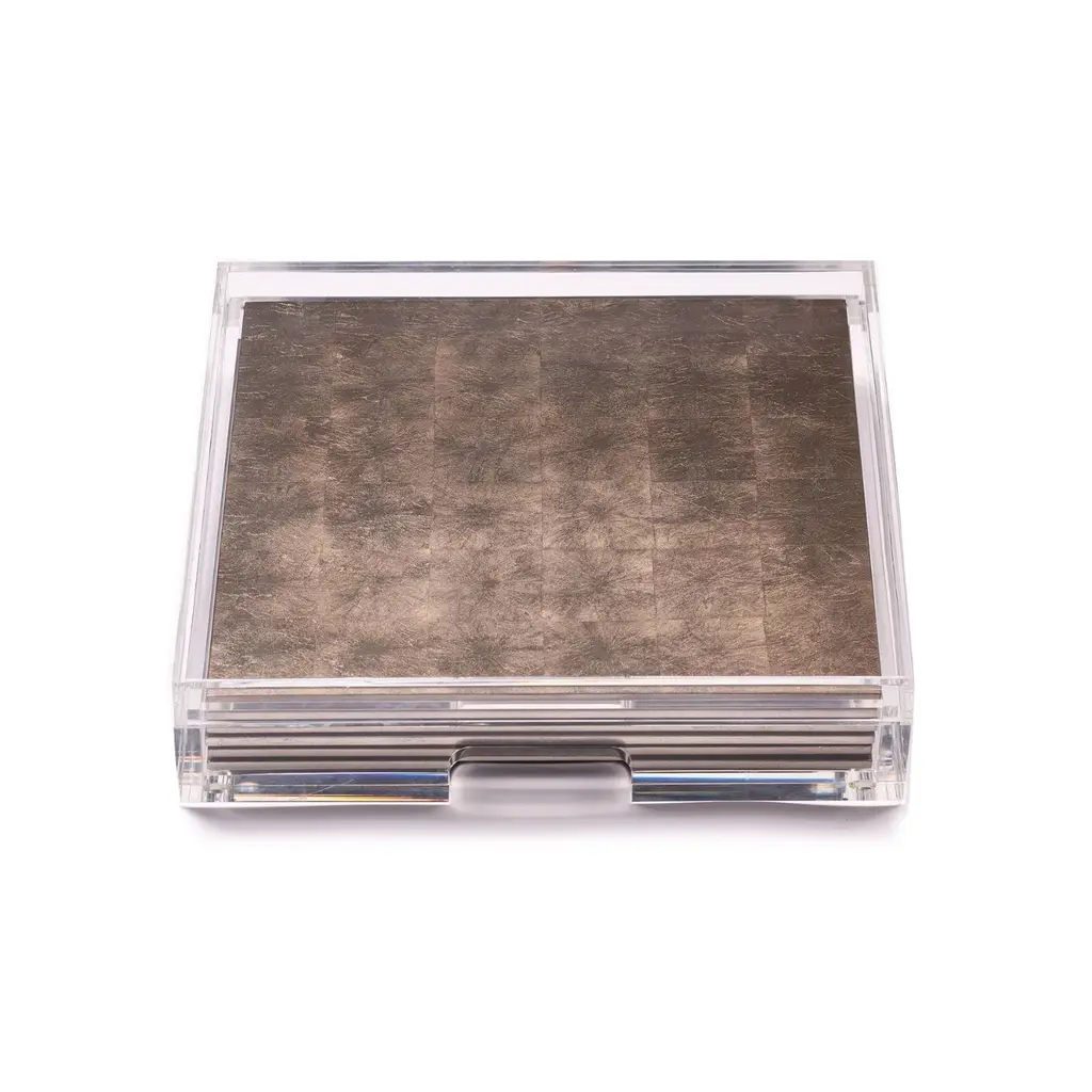 The Acrylic Placebox is an elegant and unique collection of six handcrafted placemats, perfect for elevating any table setting. Made by skilled artisans, each placemat features silver leaf meticulously applied by hand. To achieve its sophisticated matte finish, eleven layers of clear lacquer are added, with each layer carefully hand-polished to perfection.Housed in a sleek, durable display box crafted from high-grade acrylic, the Placebox itself doubles as a striking design statement. Whether you're treating yourself, surprising a loved one, or selecting a memorable corporate gift, our stylish Placebox is the perfect choice for timeless elegance and functional luxury.