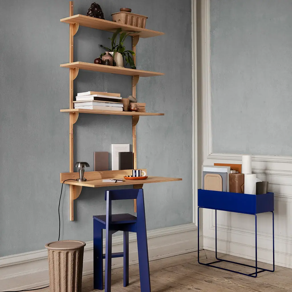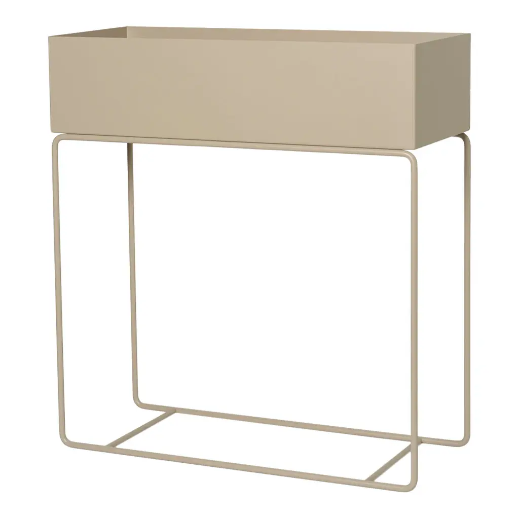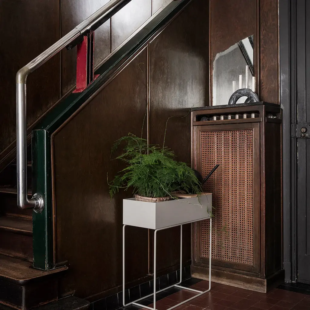 Our plant boxes can be used for decoration all over the house, as temporary storage in the hallway or as a divider to create cosy corners in larger rooms. They're suitable for flowers, plants, books, toys and magazine – or maybe a little of each. Style them with delicate flowers in fine vases or try green plants in chunky clay pots and watch how the contrasts between the design and the added elements play. There's an elegant and timeless aesthetic to the plant boxes from ferm LIVING. And the design has a striking and interesting contrast between the rectangular box on top and the thin metal legs. Plant boxes are available in several colors.