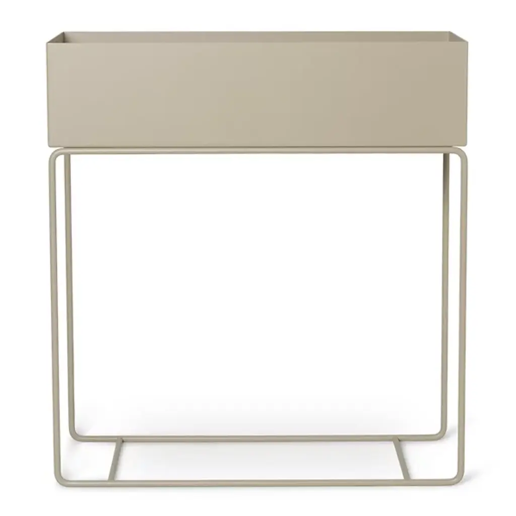 The Plant Box from Ferm LIVING is striking and timeless. It features a sleek design resting on deceptively delicate but strong legs made from powder-coated iron. This versatile piece can hold everything from plants to books and toys, making it perfect for use around the house or in other public spaces. Its stylish design allows it to function as a room divider, creating peaceful islands or cozy corners in larger spaces, embodying contemporary style and matching fabulous functionality with modern aesthetics.
