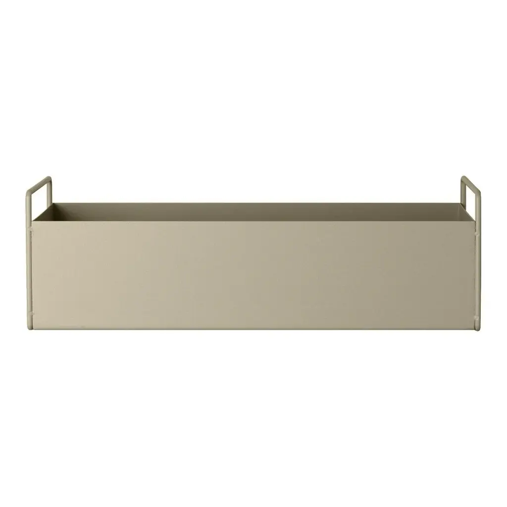 Our plant boxes can be used for decoration all over the house, as temporary storage in the hallway or as a divider to create cosy corners in larger rooms. They’re suitable for flowers, plants, books, toys and magazine – or maybe a little of each. Style them with delicate flowers in fine vases or try green plants in chunky clay pots and watch how the contrasts between the design and the added elements play. There’s an elegant and timeless aesthetic to the plant boxes from ferm LIVING. And the design has a striking and interesting contrast between the rectangular box on top and the thin metal legs. Plant boxes are available in several colors.