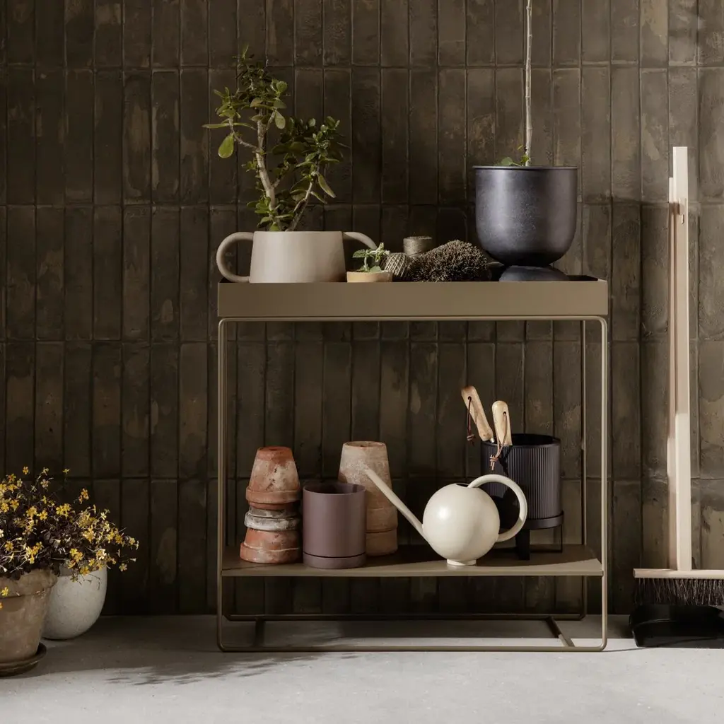 Taking our popular Plant Box to new heights, this two-tier console table has the same sleek lines you recognize from the series, but in an entirely new configuration. The upper tray and the lower shelf are ideal for storing and showing off decorative accessories as well as practical, everyday items such as cups, plates and bottles. The slim silhouette means it will fit into most spaces, as a indoor plant stand or balcony storage solution.