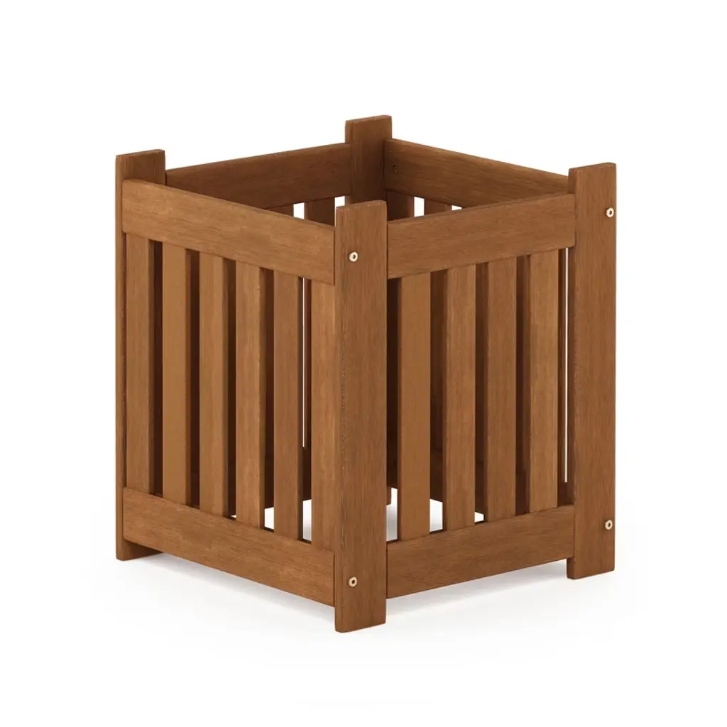 Planter BoxThis Planter boxis the perfect complement to your patio and gardening needs. Built from solid teak wood finished in a waterbased coat, it''s a simple, beautiful yet classy design.This 2 square planter boxcan be left indefinitely outside withstanding any type of weathering from rain, hail, wind, or shine eventually turning into a mellow grey. A strong, sturdy and heavy base guarantees the support needed for plants to grow.Pot linernot included. Perfect for indoor gardening as well.Product Dimension: 22"D x 22"W x 22"H , Product weight : 37 lbs