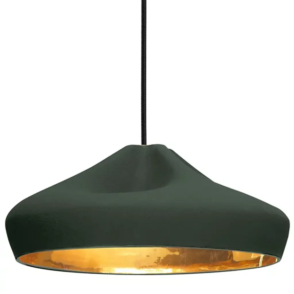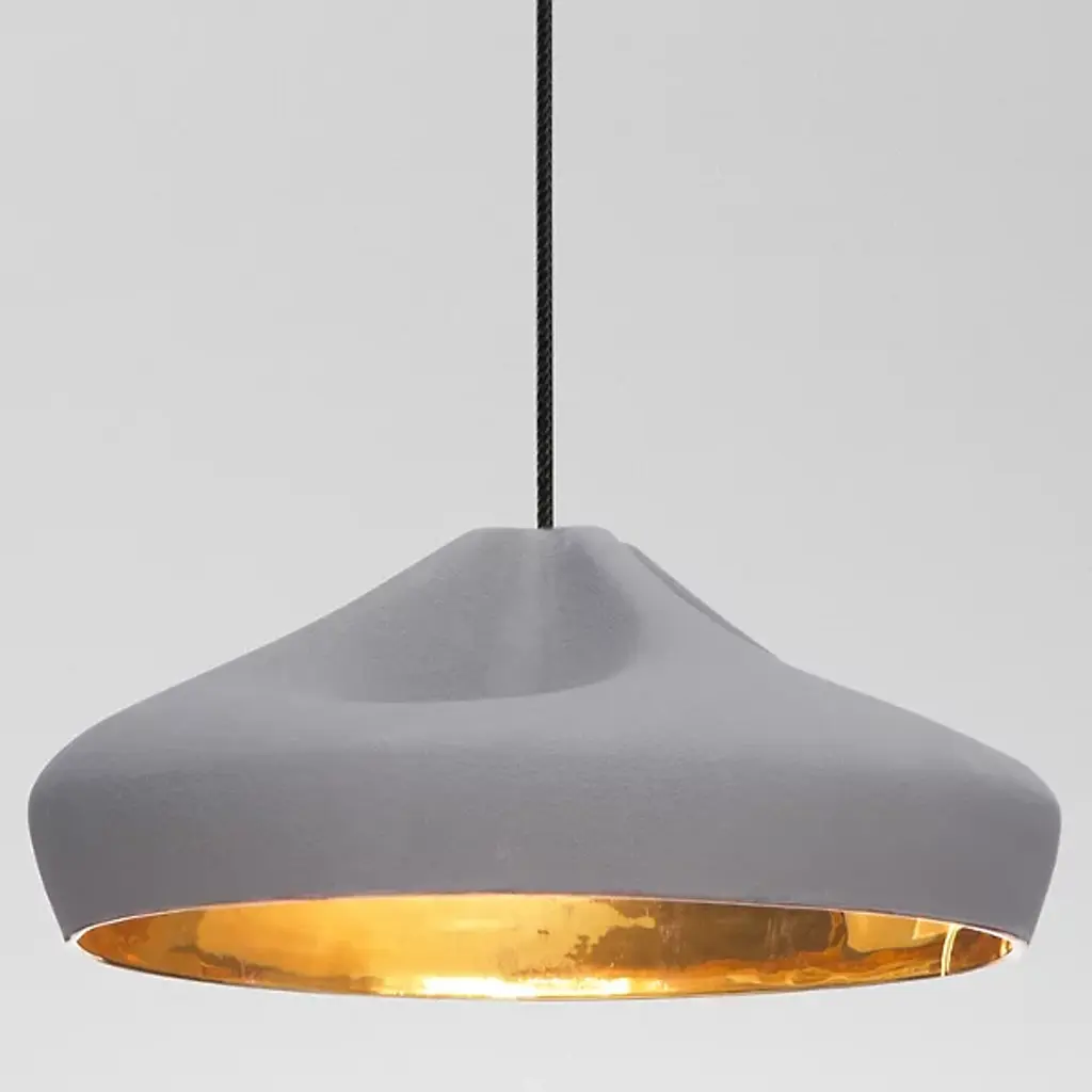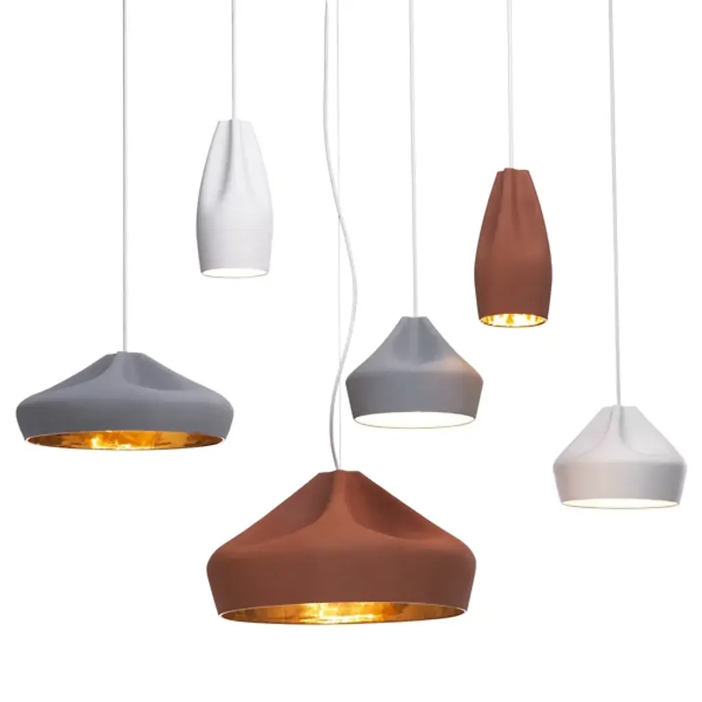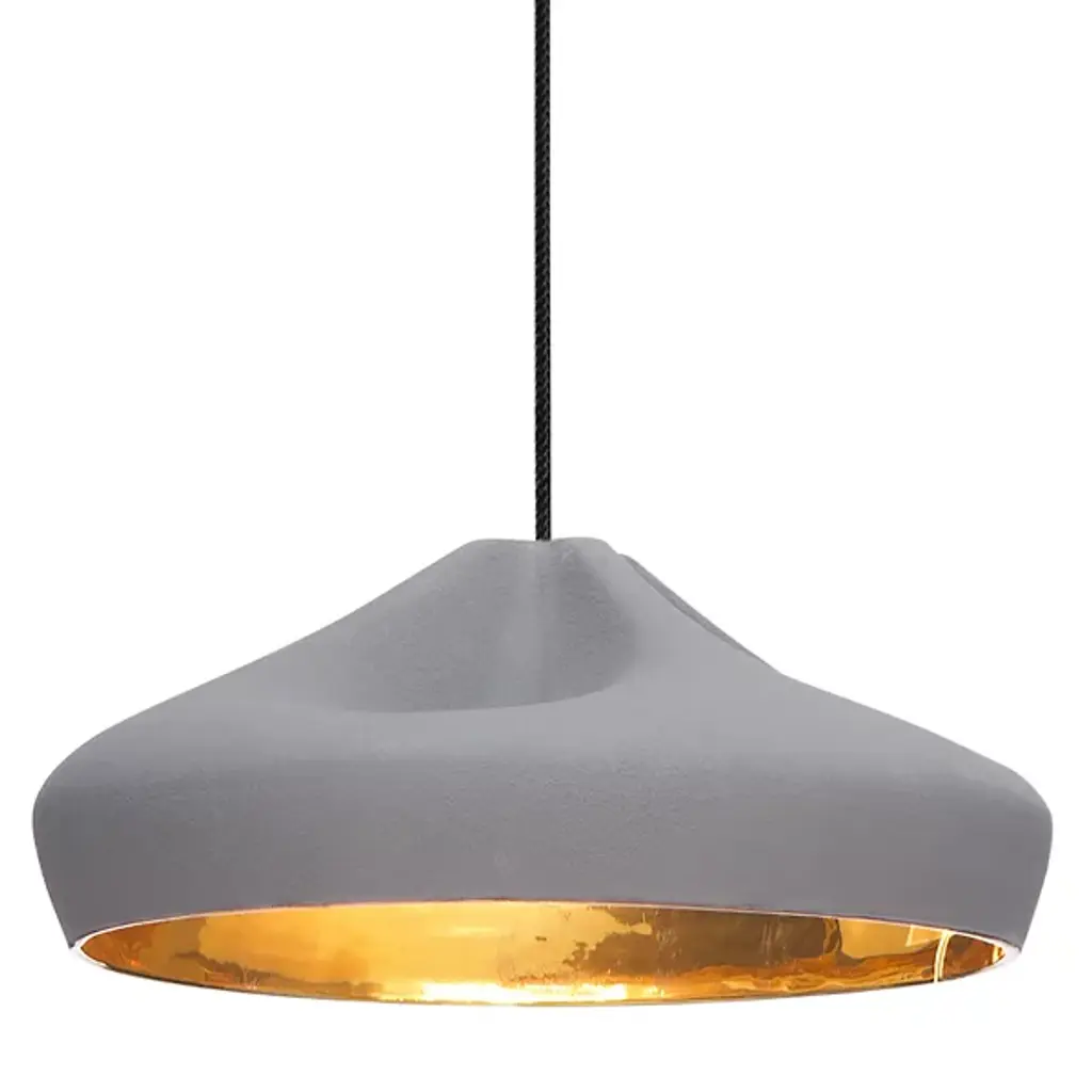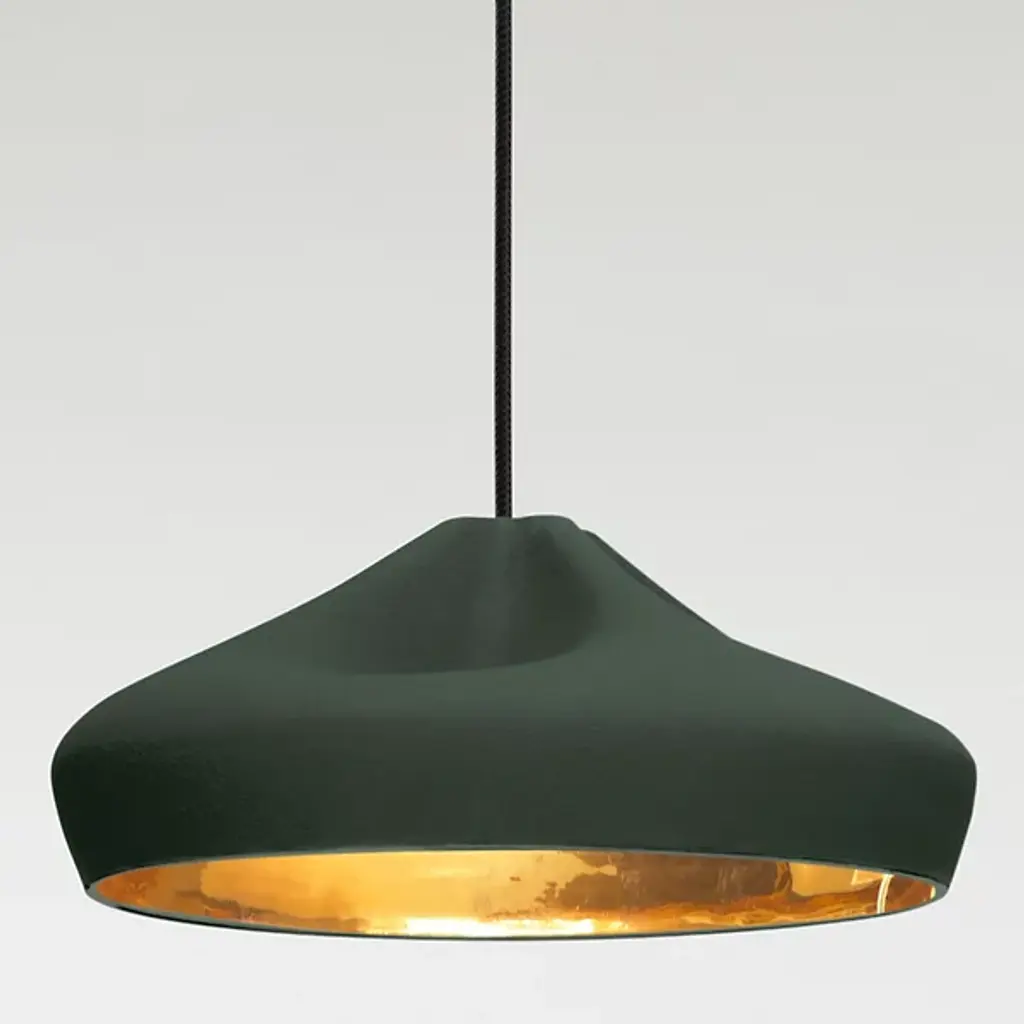 A sophisticated combination between a digitally-designed crease in a piece of cloth and ceramic gives the Marset Pleat Box 36 Pendant a unique dichotomy between a soft appearance and a structurally firm composition. The shade is available with a brilliant White enamel or gold interior, the latter of which generates an extremely warm light.