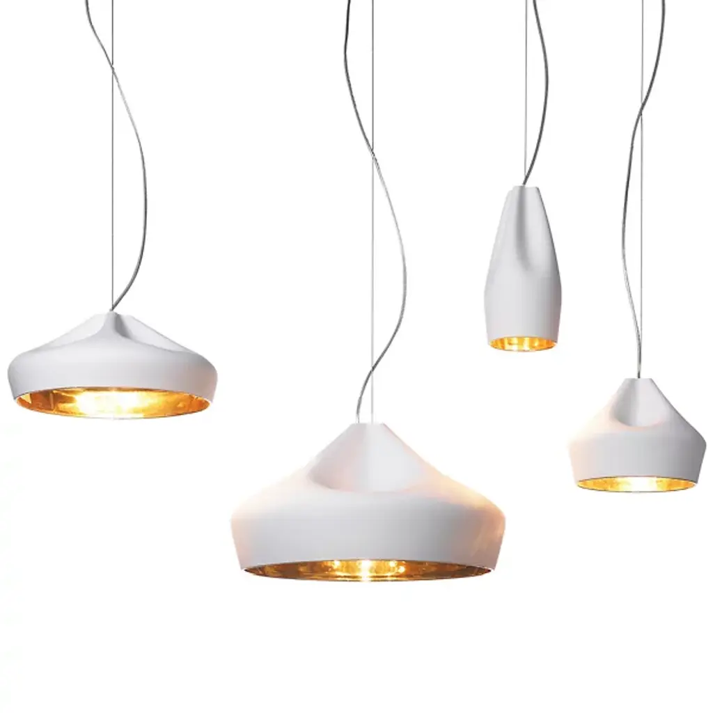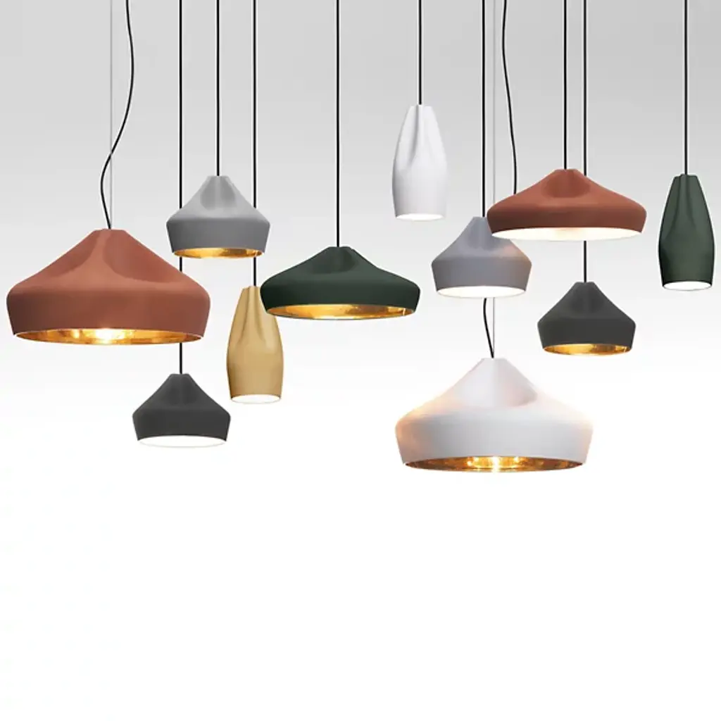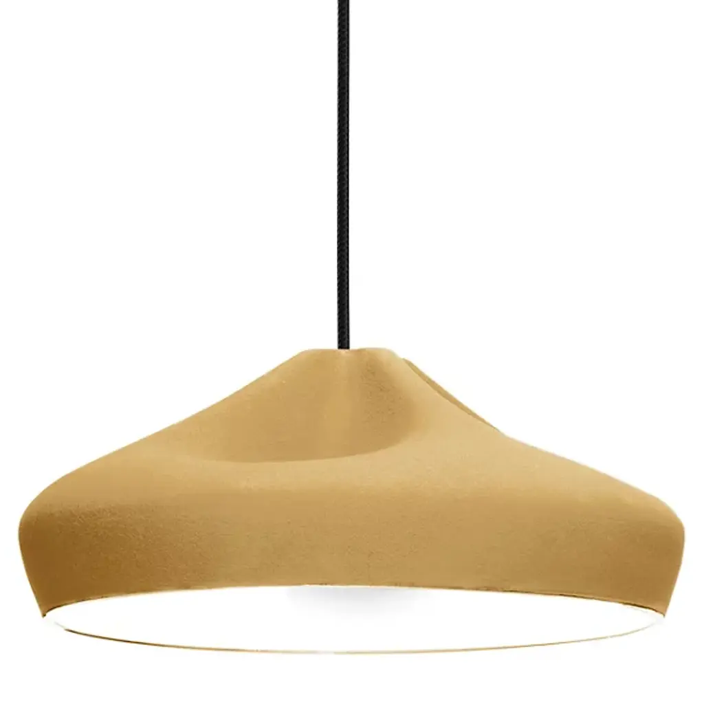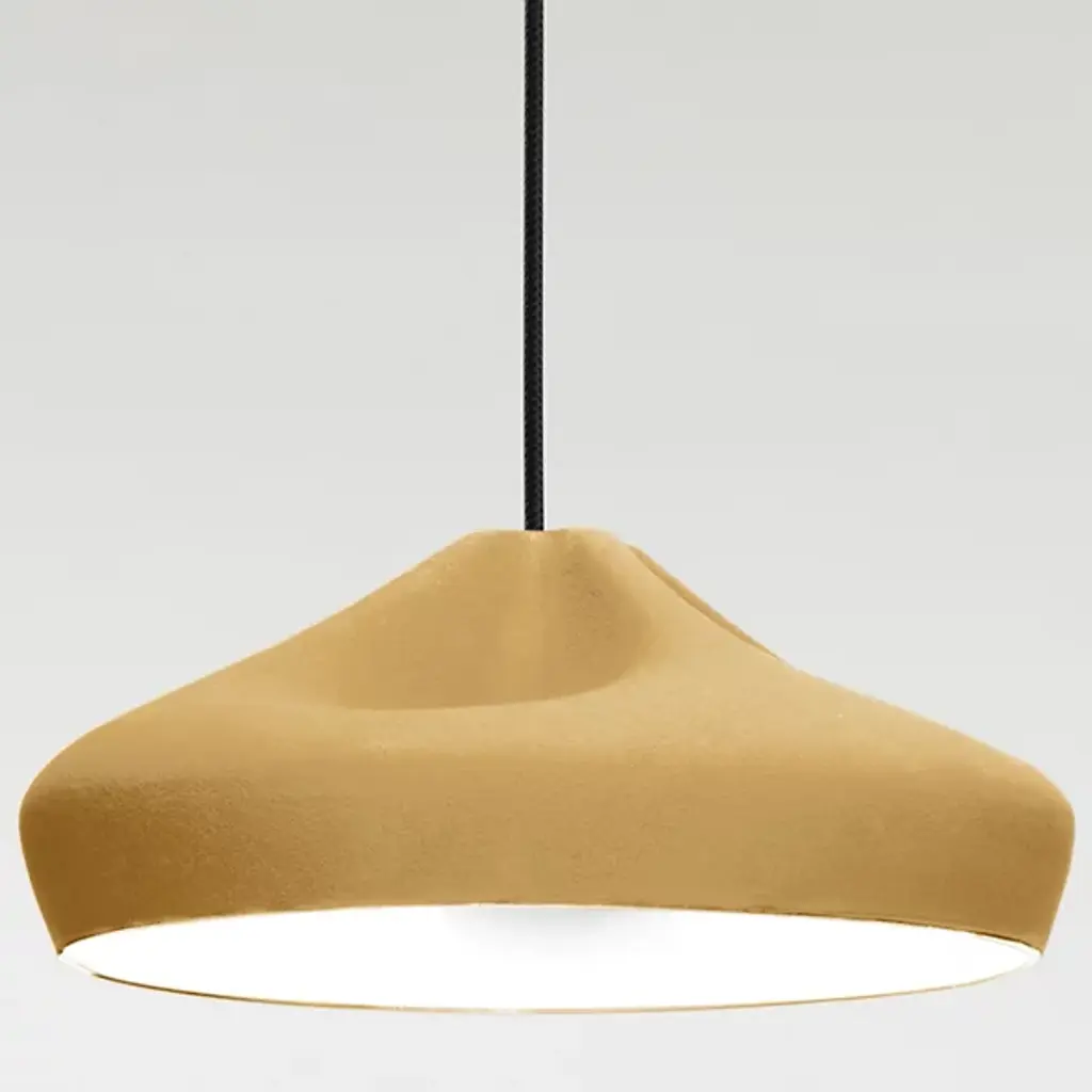A sophisticated combination between a digitally-designed crease in a piece of cloth and ceramic gives the Marset Pleat Box 36 Pendant a unique dichotomy between a soft appearance and a structurally firm composition. The shade is available with a brilliant White enamel or gold interior, the latter of which generates an extremely warm light.