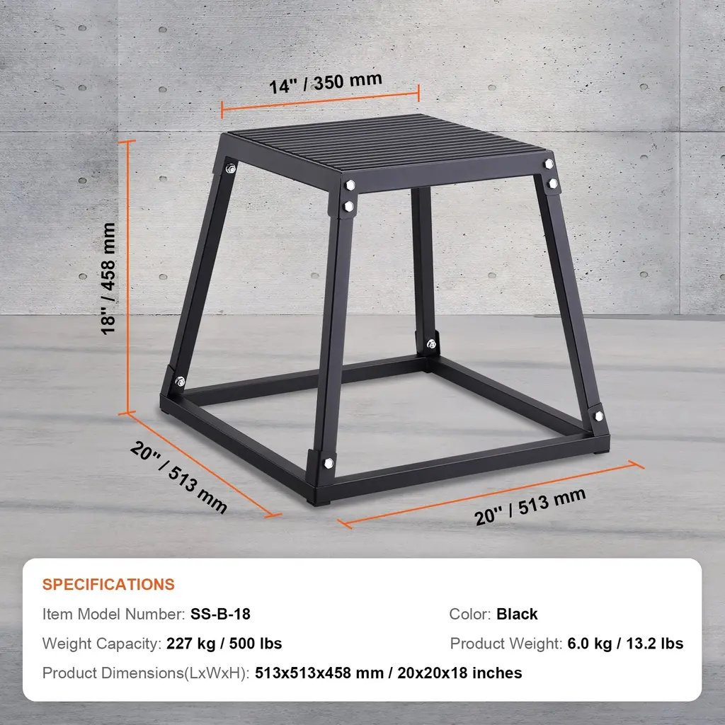 Plyometric Jump Box, Steel Plyometric Platform And Jumping Agility Box, Anti-Slip Fitness Exercise Step Up Box - Black - 18 Inch