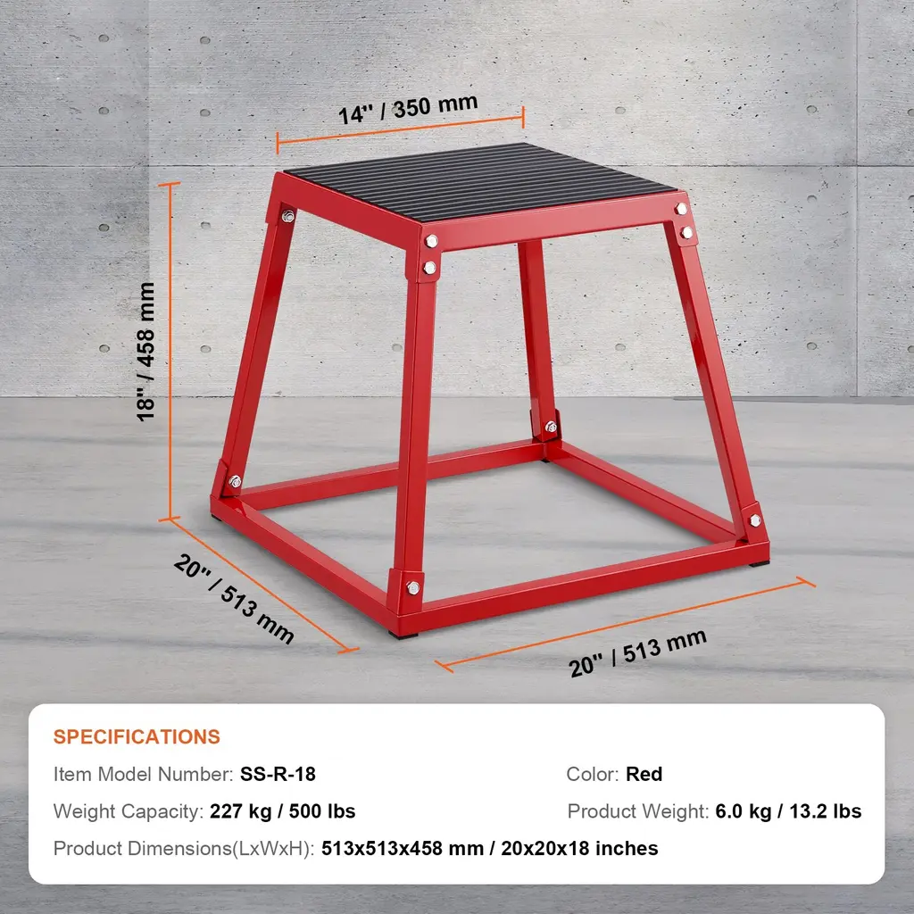 Plyometric Jump Box, Steel Plyometric Platform And Jumping Agility Box, Anti-Slip Fitness Exercise Step Up Box - Red - 18 Inch