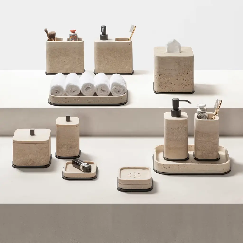 Marble structure with brass base frame and knob. Non-slip waterproof rubber base underneath. The Polo marble bathroom collection features the iconic silhouette with rounded corners, which is characteristic of the Polo family of creations, one of the brand's cornerstones, adding a gentle touch to each piece while denoting a taste for the minimal and the geometric. Every stone used to bring a Polo marble set to life is different from the other providing a unique, exclusive design to each creation.