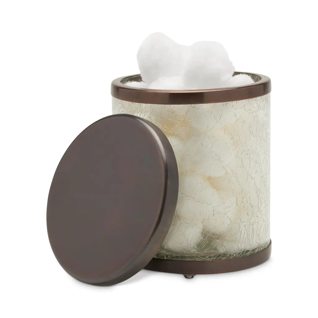 Pigeon & Poodle's Pomaria bath accessories add a glamorous element to your bathroom with light-catching crackled glass and polished metal accents.