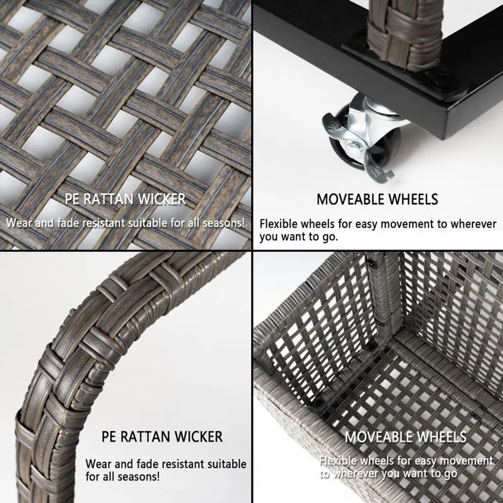 Poolside Rattan Storage Box with Rolling Wheels | 43.3" L x 22.5" W x 28.7" H | Versatile for Poolsides, Patios, Gardens | Compartments & Storage Basket | Outdoor Organizer with Caster Wheels