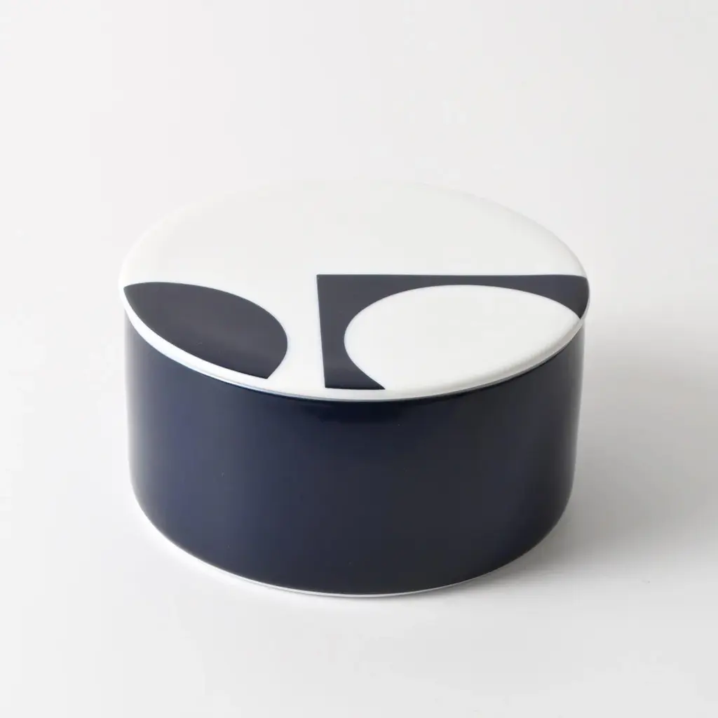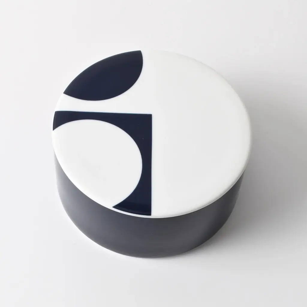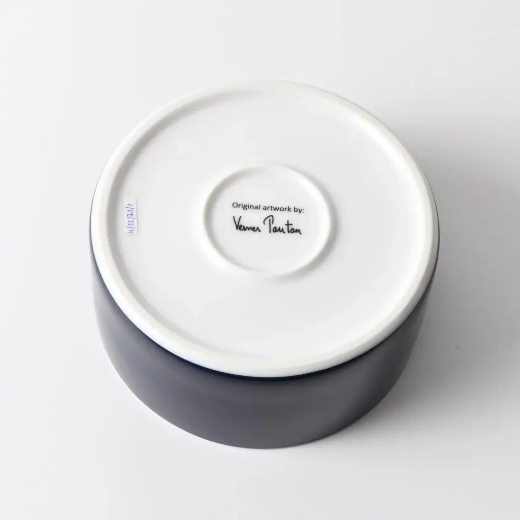 Porcelain box decorated with Geometri pattern by Verner Panton. Made in the 2000s by a Danish brand Menu. This piece has an attribution mark, I am sure that it is completely authentic and take full responsibility for any authenticity issues arising from misattribution