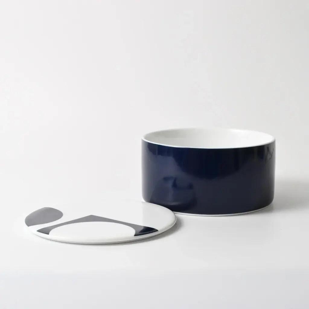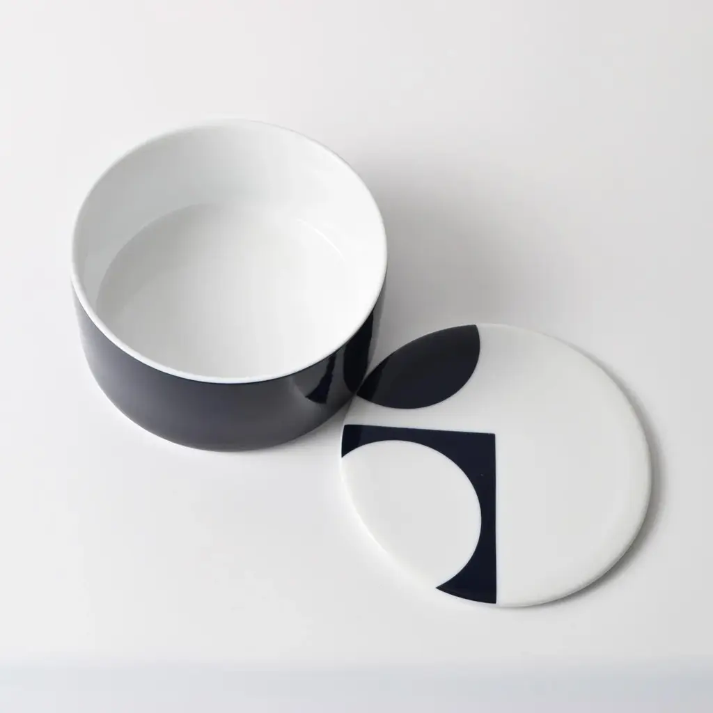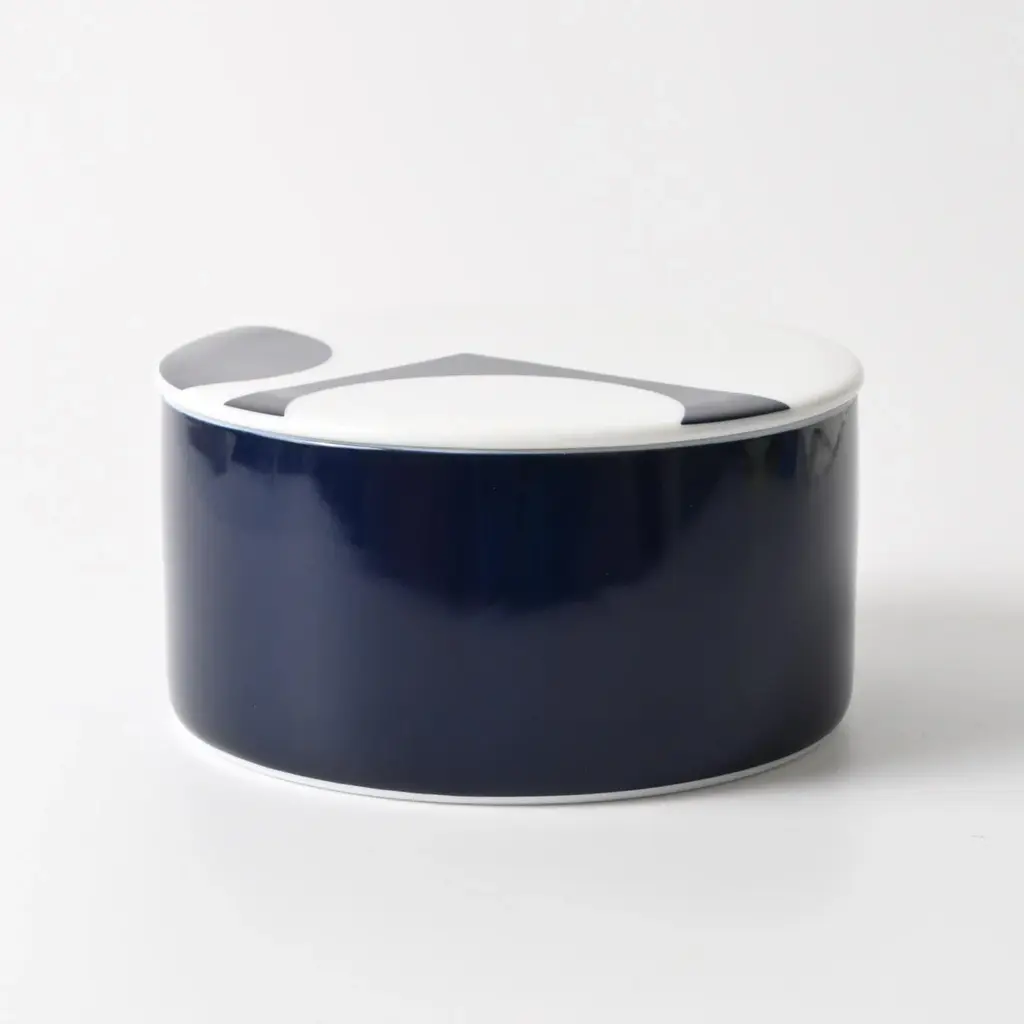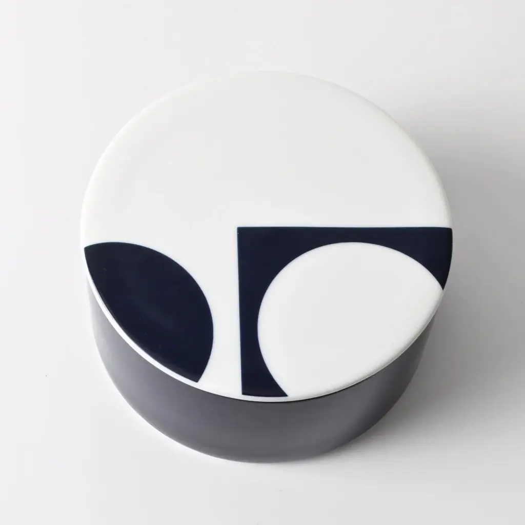 Porcelain box decorated with Geometri pattern by Verner Panton. Made in the 2000s by a Danish brand Menu. This piece has an attribution mark, I am sure that it is completely authentic and take full responsibility for any authenticity issues arising from misattribution