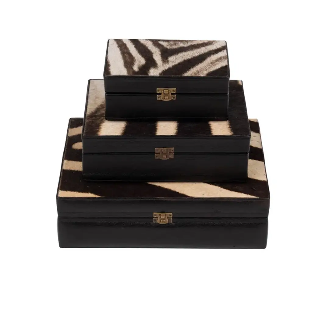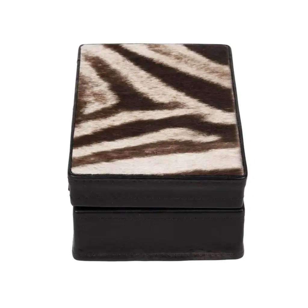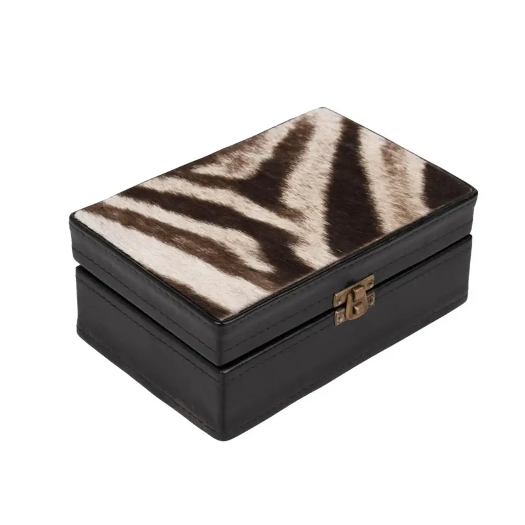 A naturally elegant addition to your collection, this decorative box is crafted with distressed leather and sustainably sourced genuine zebra hide. We love this piece as a keepsake box as well as for adding concealed storage to any room. Due to the use of natural materials, each piece is unique and may vary slightly from image shown.