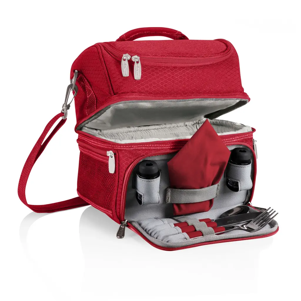 The Pranzo is an insulated lunch box that features isolated sections so you can separate your hot and cold food and drink items. Made of polyester (exterior and interior), the Pranzo also features an adjustable shoulder strap, soft grip handle, side mesh pockets, and a hidden flatware section. The Pranzo is perfect for school, work, day trips and gift giving occasions. Features Includes