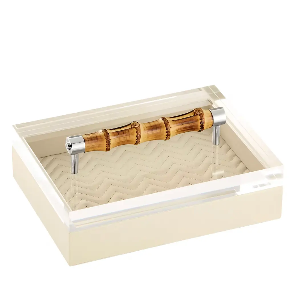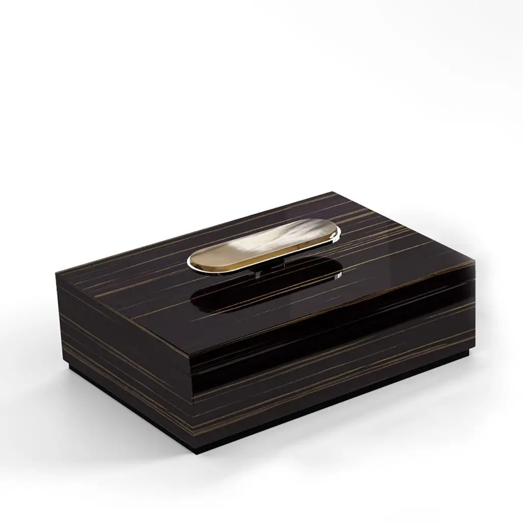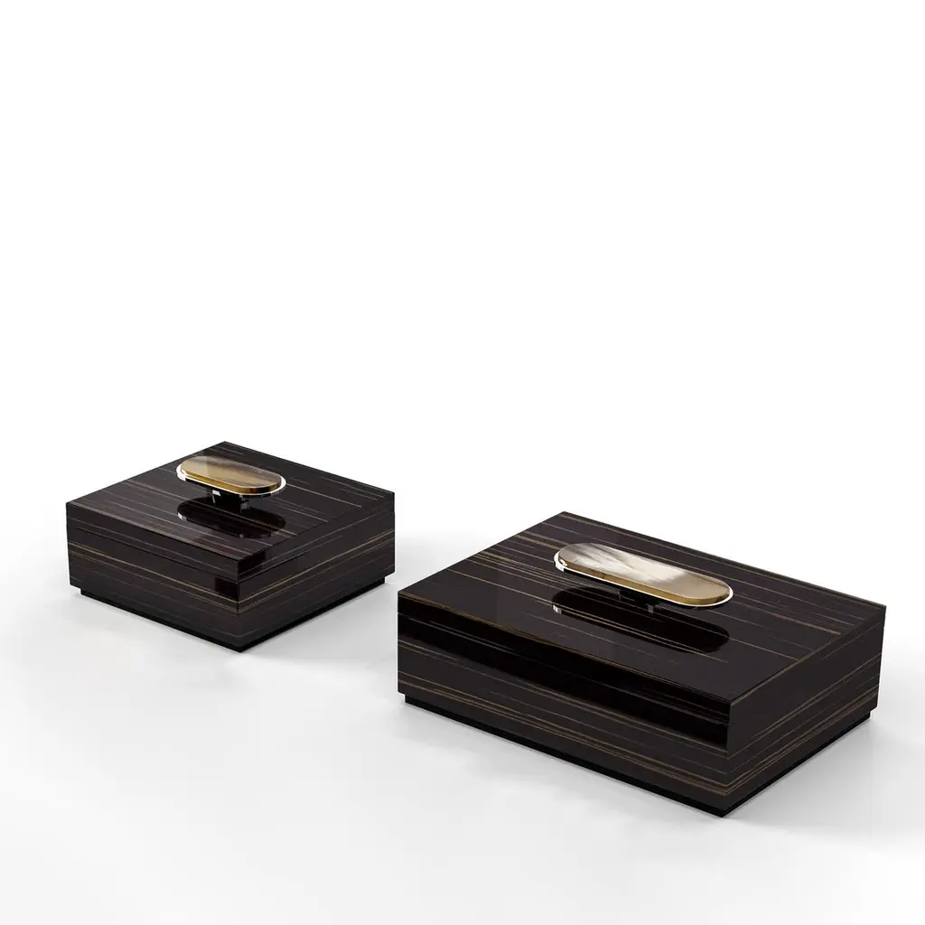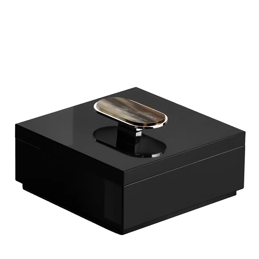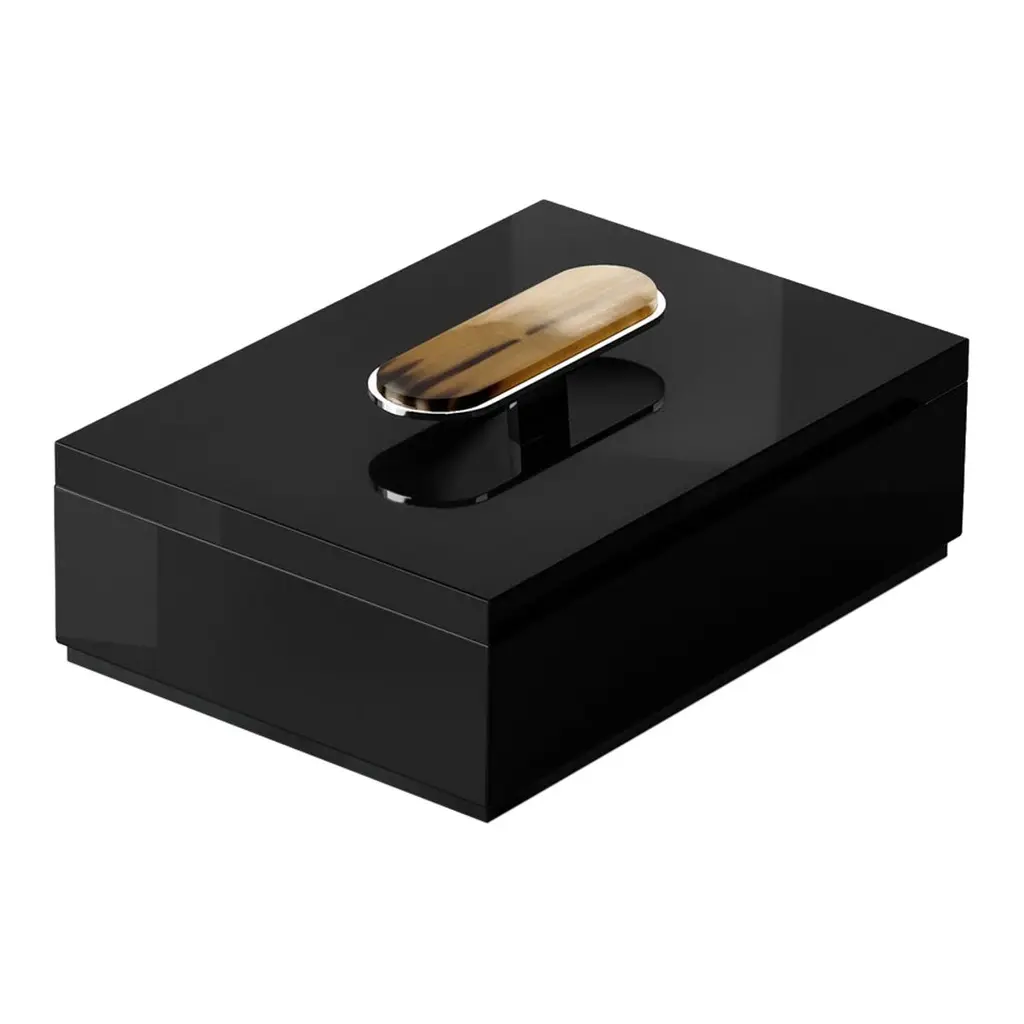 The Priora box is designed to provide an exquisite storage solution for small items. Fashioned from glossy ebony, each box is distinguished by an elegant detail in Corno Italiano and chromed brass decorating the lid. What sets Priora apart are the exclusive shades of the italian Corno, that add authentic and natural beauty to the design and make each piece unique. Available in both square and rectangular shapes, the Priora box is perfect as a thoughtful gift or to elevate the most exclusive environments.mod. 2403: cm 18 x 18 x H cm 10mod. 2409: cm 20 x 28 x H cm 11Note: Colors and shades of Corno Italiano processed by our Company are unique and due to the natural origin of raw material. For this reason Corno Italiano tones that can be seen in pictures are indicative and can not be reproduced in finished products.
