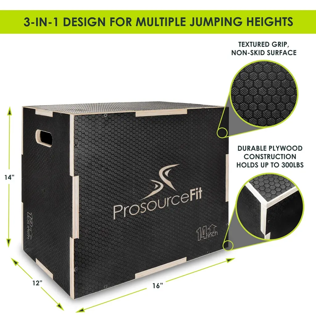 Prosourcefit 3-In-1 Wood Power Grip Plyometric Box, 30/20/24 - Small