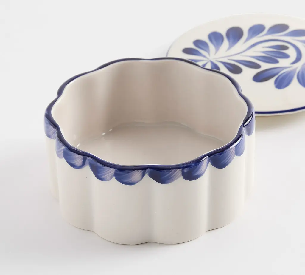 Handcrafted in Mexico City, this vibrant porcelain brings bold color and artistry to your space. Detailed with gorgeous hand-painted flowers and vines, no two pieces are exactly alike. Set it on a vanity or nightstand to safely store often-worn jewelry.
