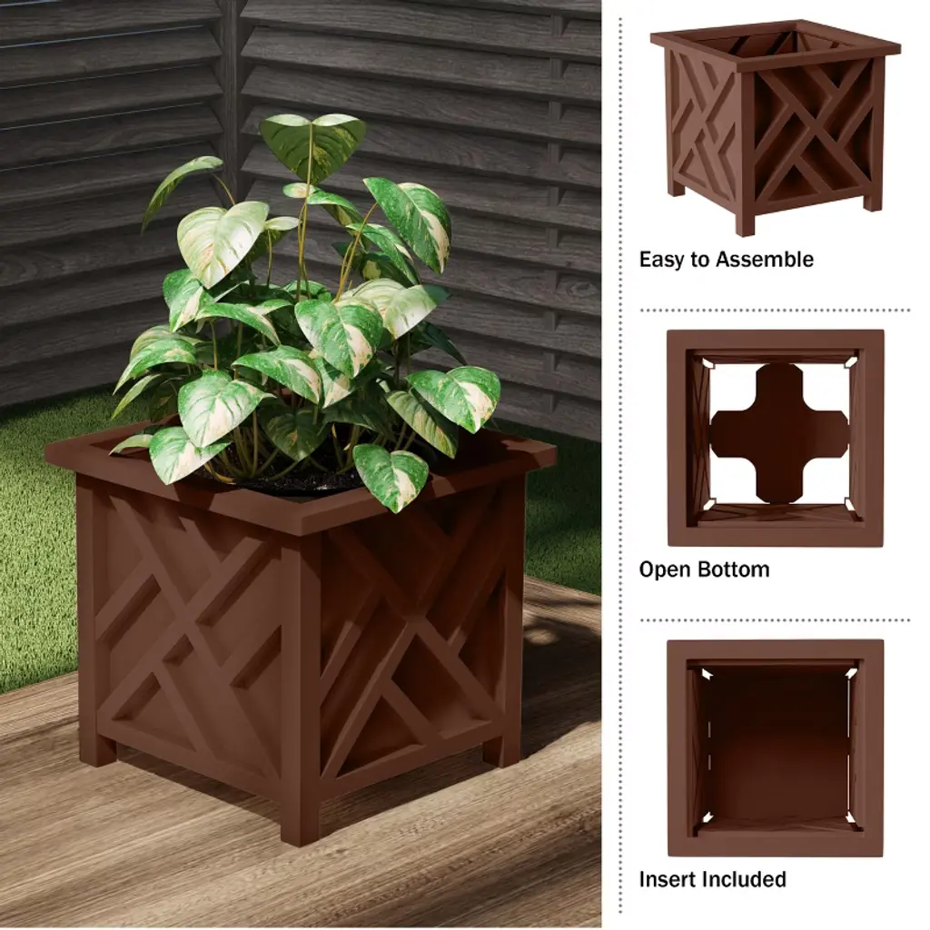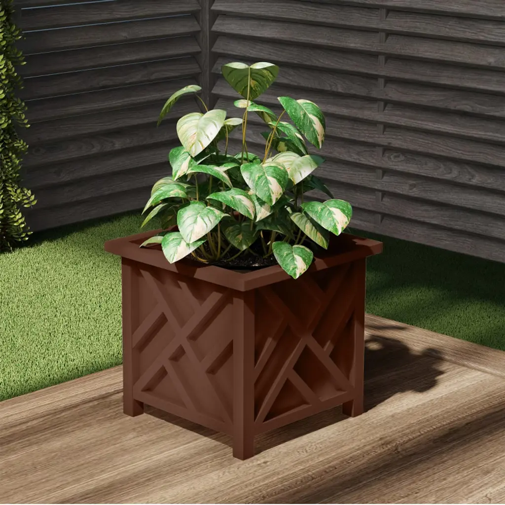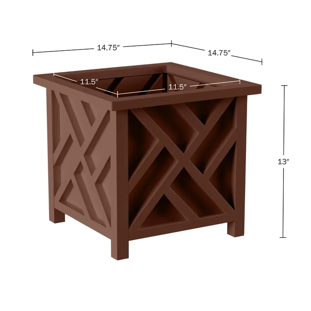 Pure Garden 14.75" Lattice Planter Box, Brown
