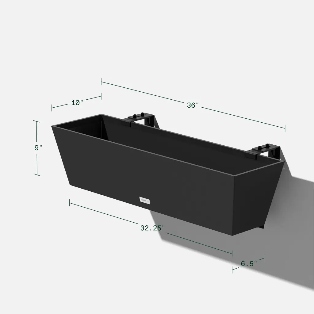 Pure Series Railing Window Box Planter - 36 Inch - 2 Pack - Black