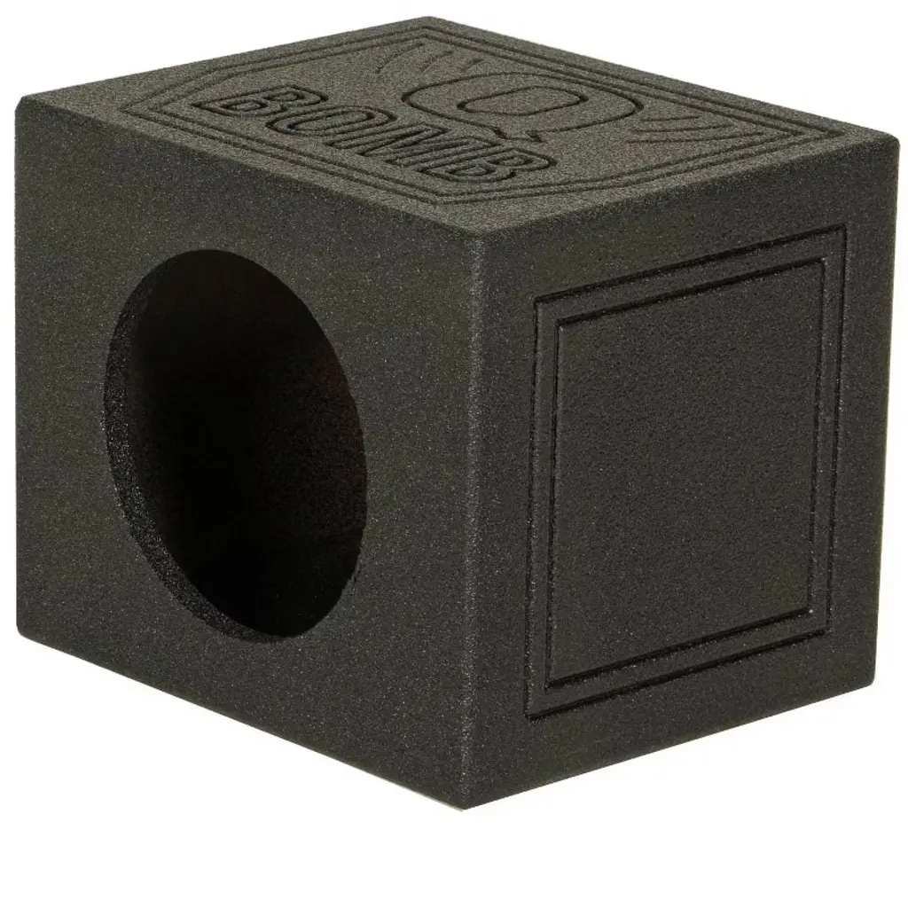 This Q-Power 10" QBOMB10S Single Subwoofer Box Enclosure is designed and built for the deepest bass. It features a single sealed chamber design, 1.2 cubic feet of air space and a mounting depth up to 12 inches. The Q-Power 10" Q-Bomb subwoofer box is finished with a black bedliner spray for increased durability. Turn your ride into a sound machine with the help of the Q-Power 10" Subwoofer Enclosure! If you want the most output for your money, this is the way to go. "Q Bomb" is etched in the top of the box Dimensions: 16" (W) x 13.25" (H) x 13.25" (D) 2-year Warranty: (1-year Manufacturer + 1-year VMInnovations)