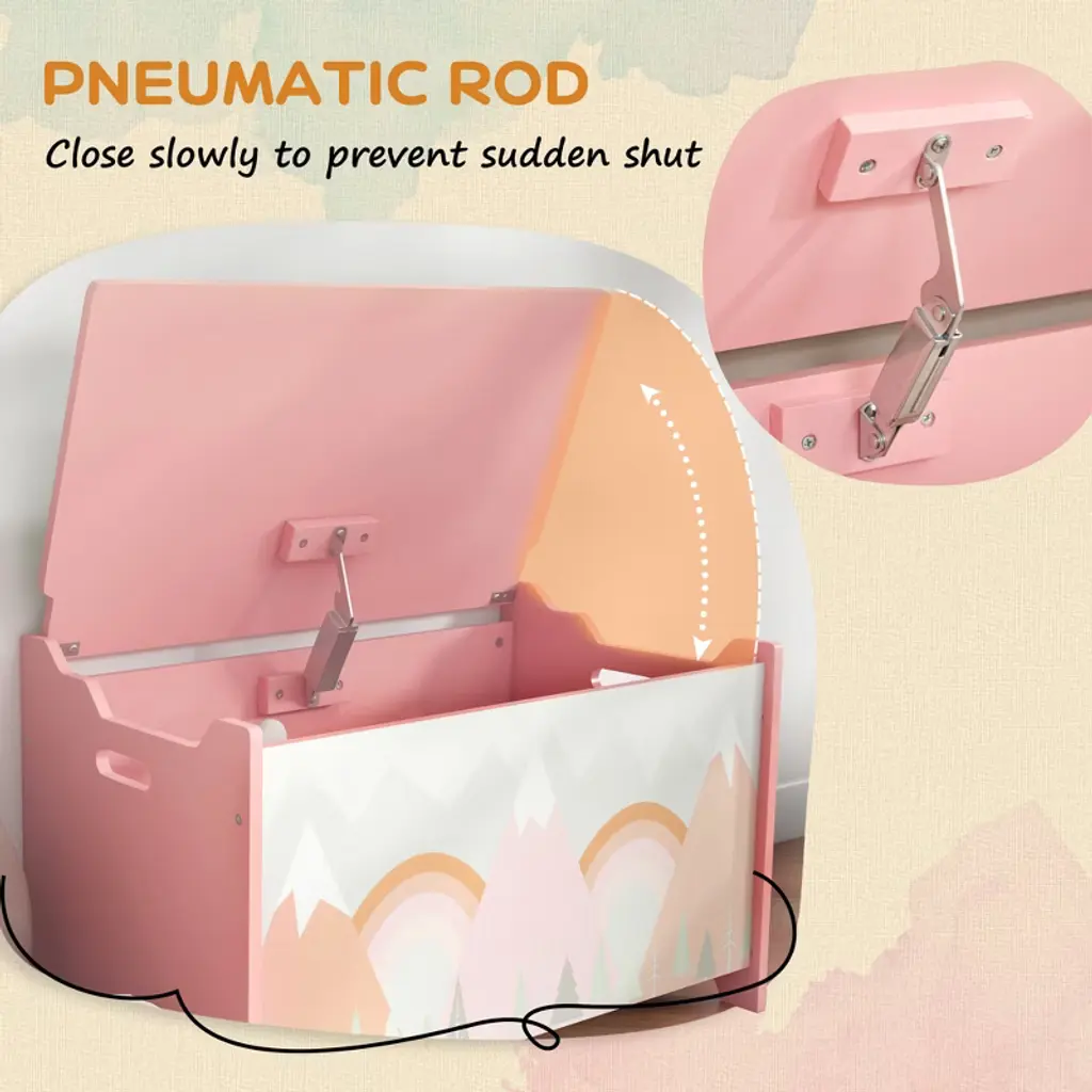 Qaba Toy Box With Lid And Kids Easel With Paper Roll, Blackboard, Whiteboard, Cute Fox Design Kids Activity Furniture Set For Ages 3-8 Years, Pink