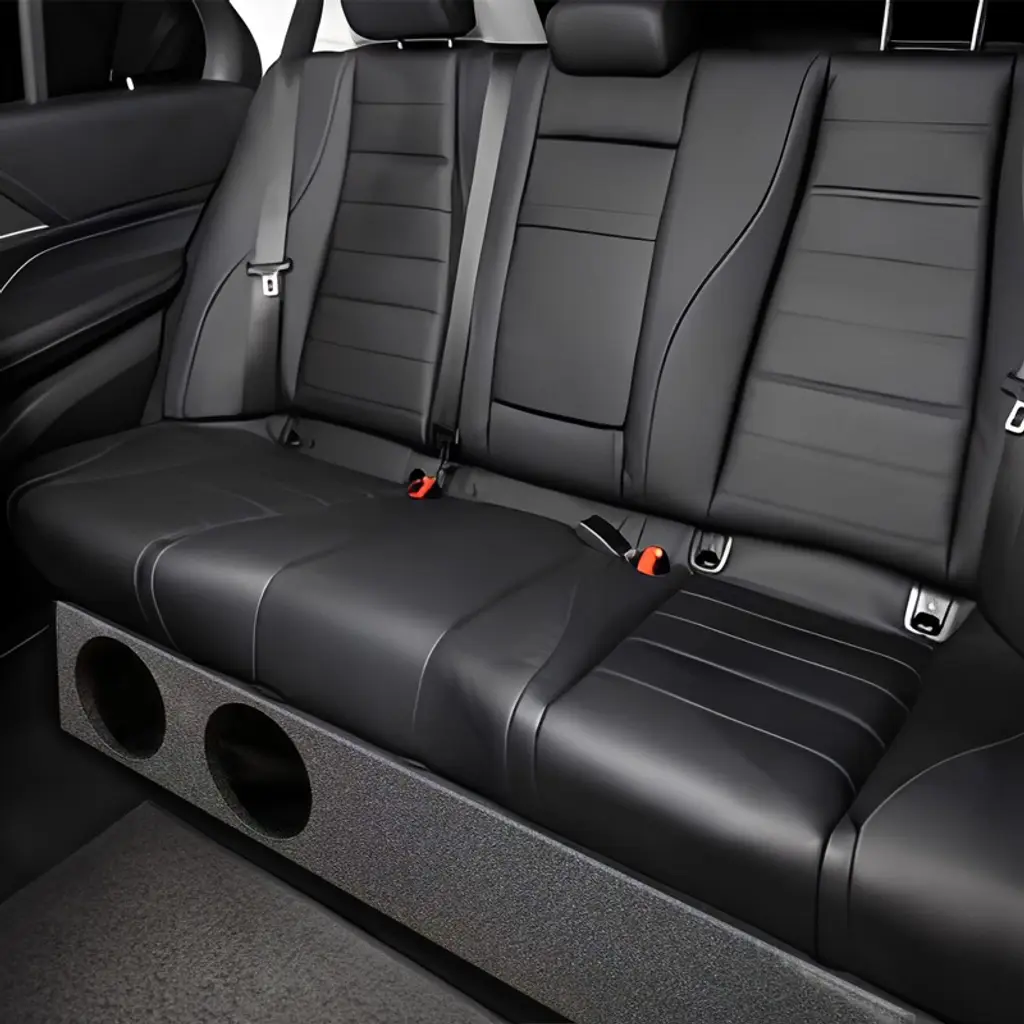 Experience the high-quality sound your subwoofers deserve with the QPower QBomb 8-Inch Dual Ported Subwoofer Box. This casing was ideally designed to fit in any Ford F150 Super Crew trucks from 2009 to current as well as Ford F250 and 350 Super Duty trucks 2017 to current. The enclosure features two 8-inch ported openings for an ideal fit. The cover is designed for the utmost durability, so you can enjoy musical longevity. Constructed from a strong bed liner material, this enclosure will protect your subwoofers from any unnecessary wear or tear. Once fitted, the enclosure will elevate your speakers to a whole another level. With underseat down fire capabilities, the enclosure will help produce a louder and crisper sound than ever before. Feel free to turn up the bass as loud as you want, as the enclosure's design is the ideal spot for bass bumping at a comfortable tuning frequency of 35 hertz. Crank up that volume and enjoy that sound, with this QPower QBomb Subwoofer Enclosure.