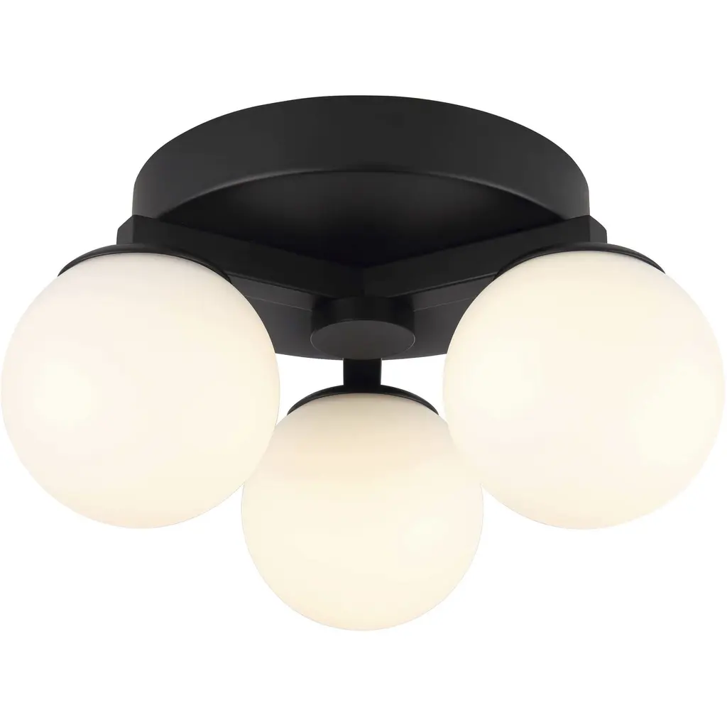 Complement any room or home décor with the transitional look of Donahue. This minimalist semi-flush mount comes in your choice of brushed nickel or matte black, two timeless finishes. The rounded opal glass shades complete the look, creating a soft glow that is perfect for any hallway, bedroom, or foyer.