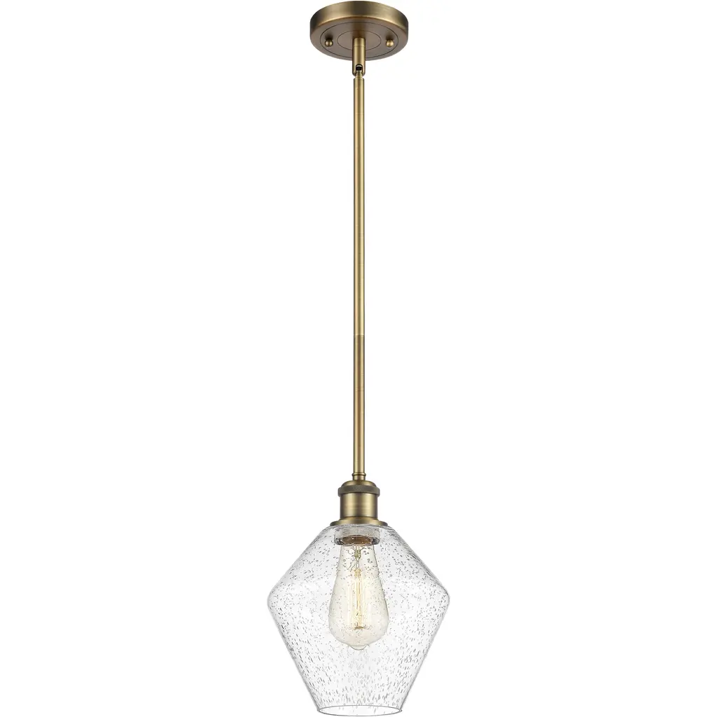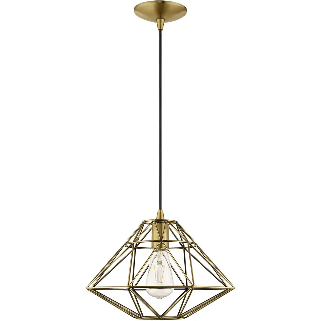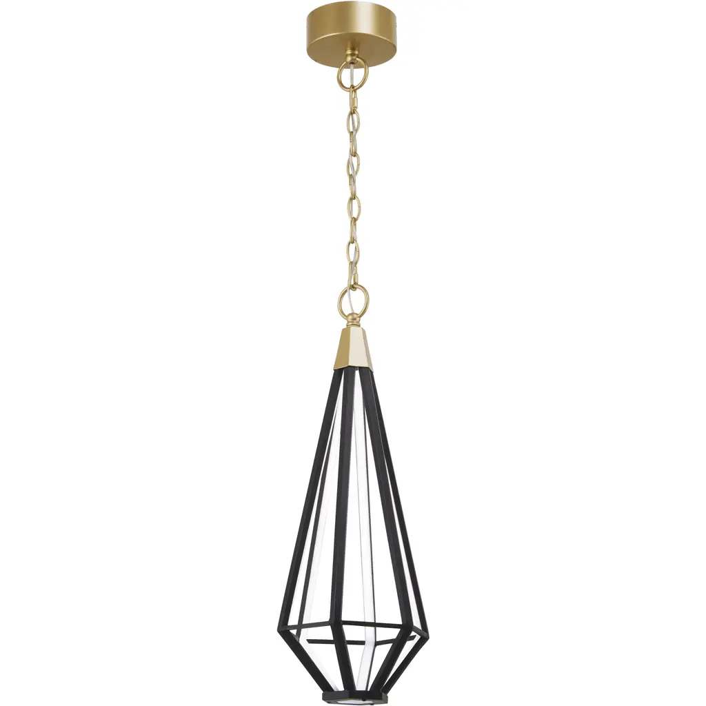 Pentagonal facets of clear glass create sculptural geometry in the Kinslee mini pendant, also available as a semi-flush mount. With a polished brass finish, Kinslee gleams like a special piece of jewelry. Or, create a modern look with the matte black colorway.