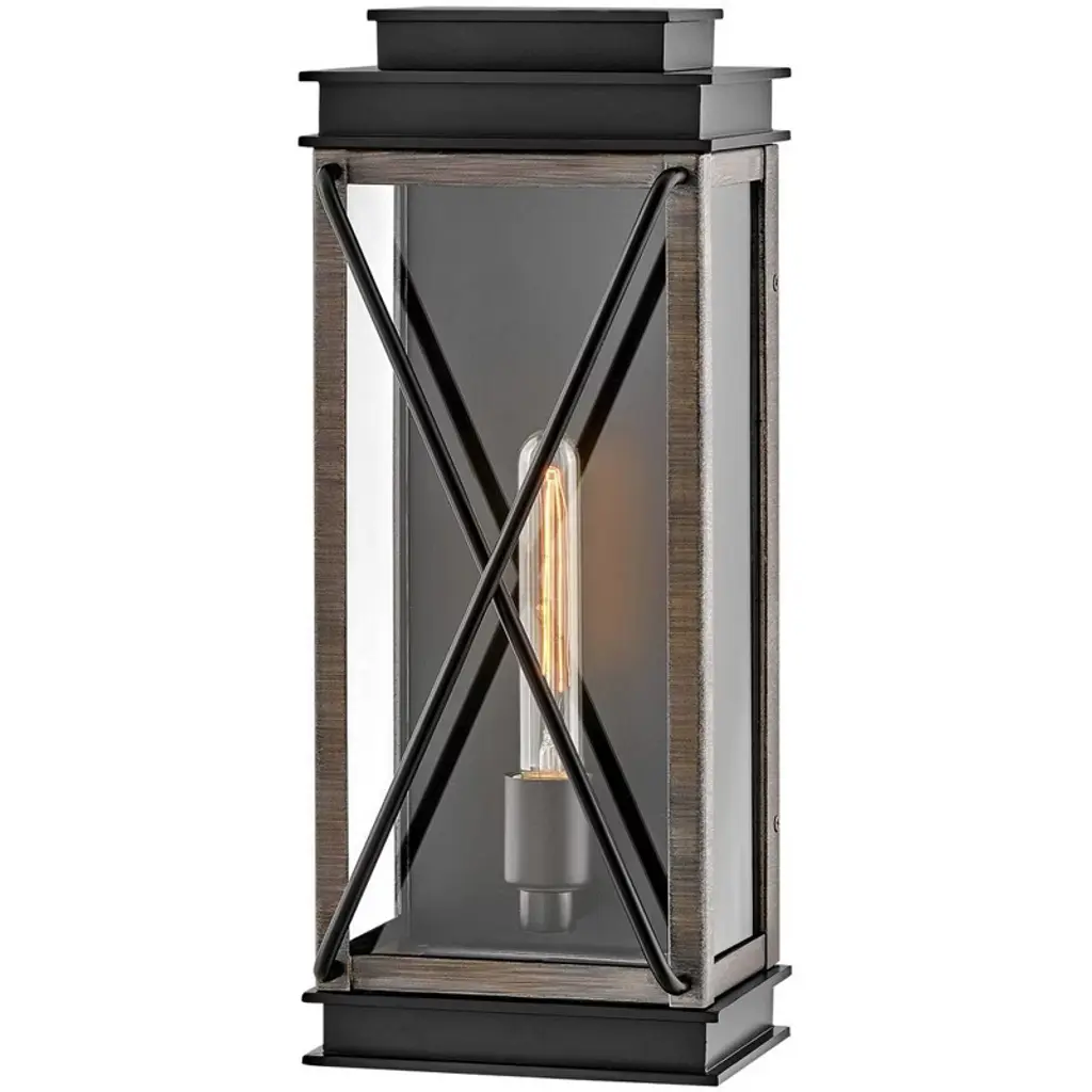 Create a lasting impression with Strader outdoor lanterns. A matte black frame and distressed wood accents pair with clear seedy glass panels for a farmhouse-ready look. Available as a hanging lantern or in various sizes of wall lantern, Strader is an easy way to add stylish illumination to a front porch or landscape.