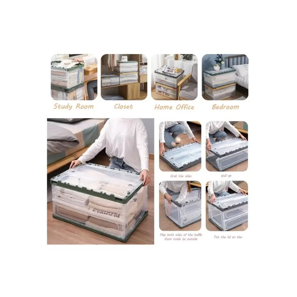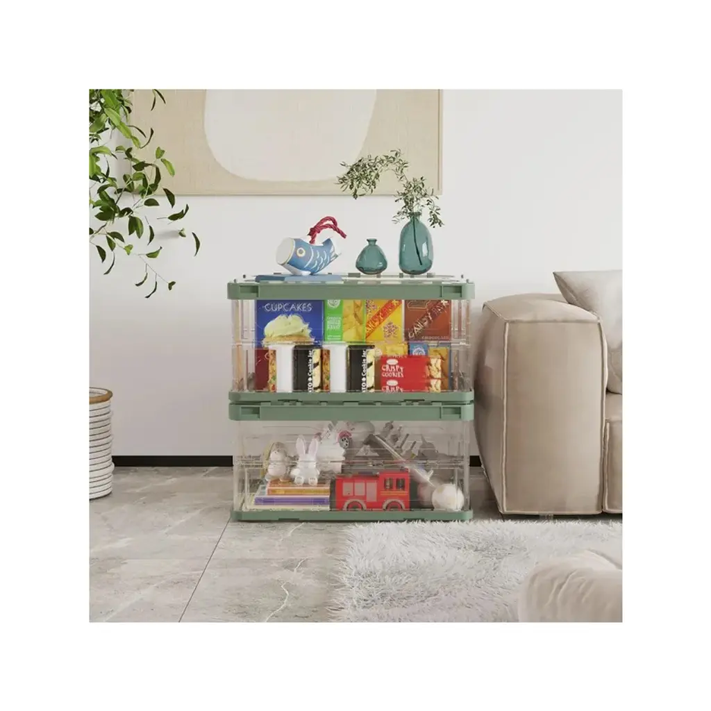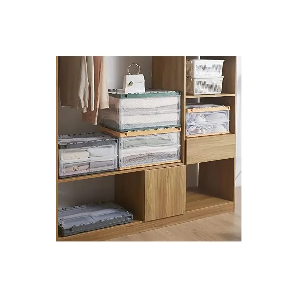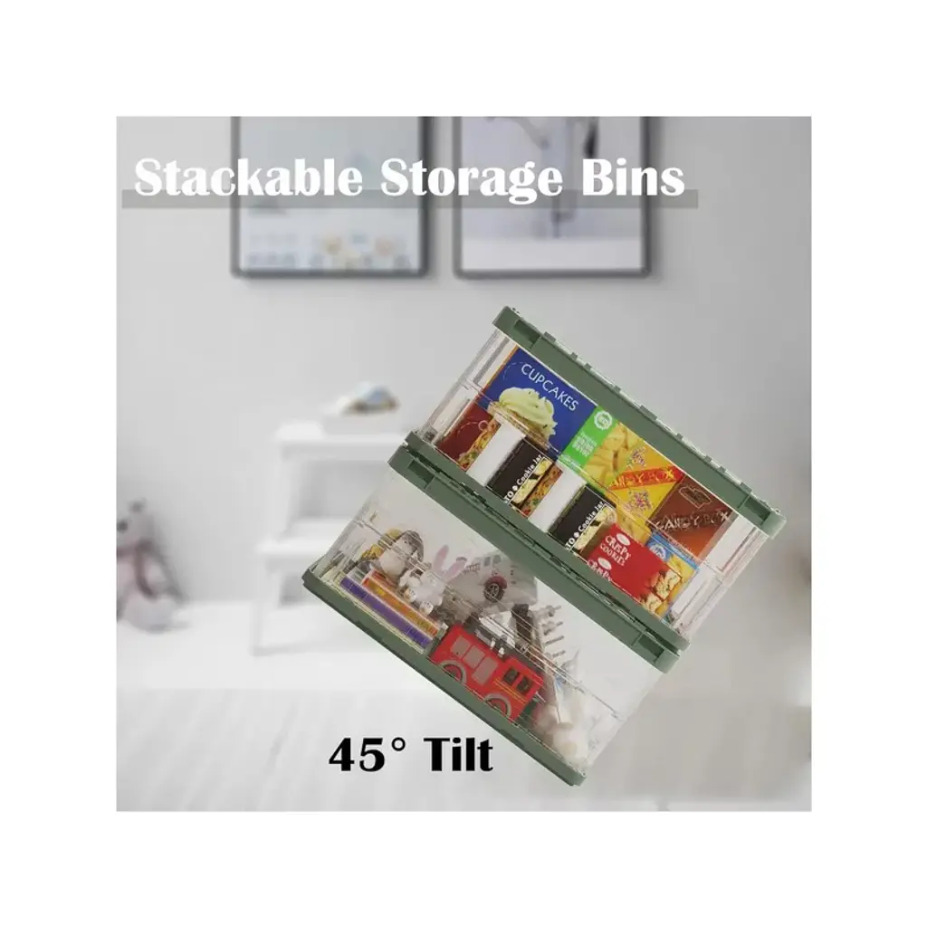 Clear Plastic Bins with Lids, Collapsible Storage Cube X-Large Storage Drawers for Organizing Stackable Bin Storage Containers Storage Box for Toy Storage, Cabinet, Closet Organizers and Storage - Green