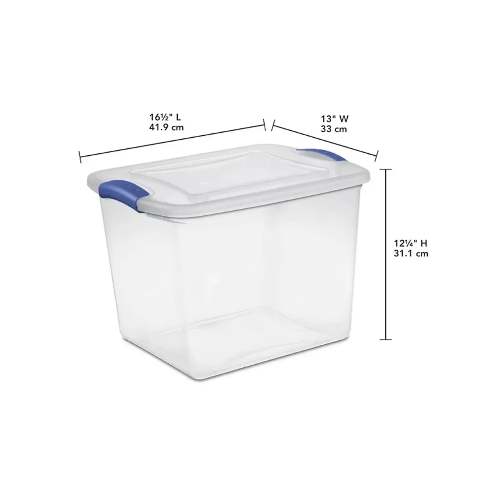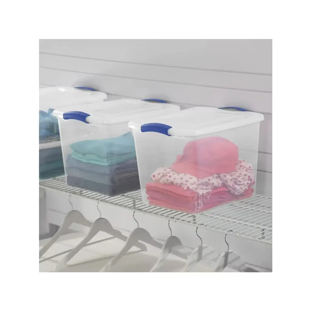 4pack 27 Quart Clear Plastic Storage Container with Latch Lid, Blue Declutter & Organize with Crystal-Clear Convenience! Tired of messy closets and chaotic garages? Achieve a perfectly organized home with our 4-pack of 27-Quart Clear Storage Containers. Designed for durability and visibility, these bins are the ultimate solution for storing, protecting, and accessing your belongings with ease.