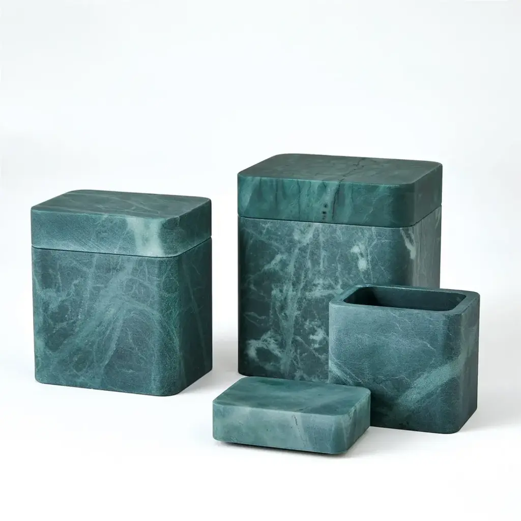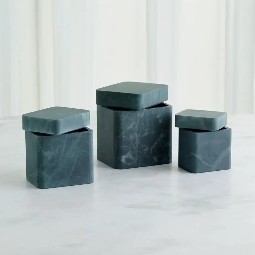 Handcrafted Italian rectangular alabaster boxes and tray with rounded corners. As alabaster is a natural product, there will always be variations in veining and color making each piece unique. From a fashion forward perspective, Global Views offers accessories, furniture, statement lighting, and an assortment of rugs and mirrors to add beauty and joy to your home.