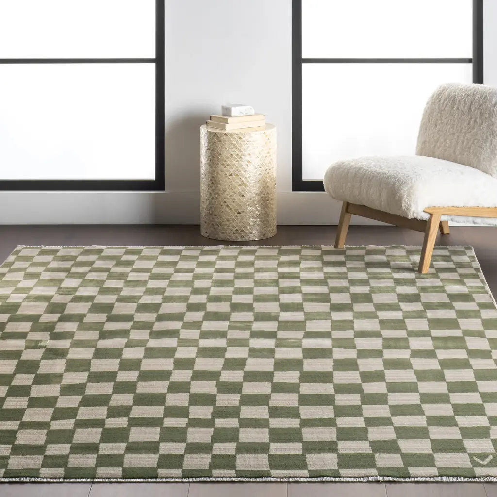 Rasali Checkered Box Rug | Green - 2' 8" X 8'
