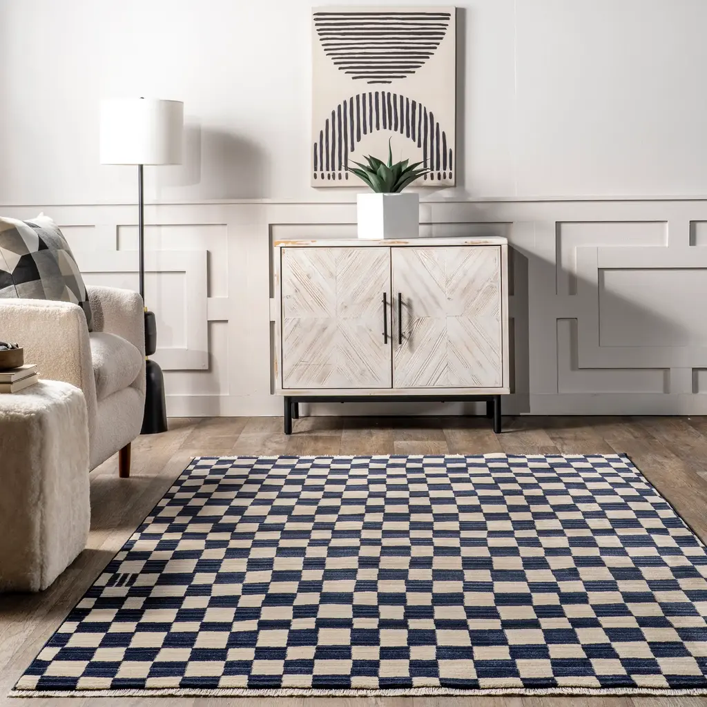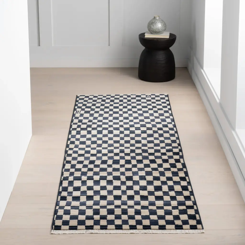 Rasali Checkered Box Rug | Navy - 2' 6" X 6' 5"