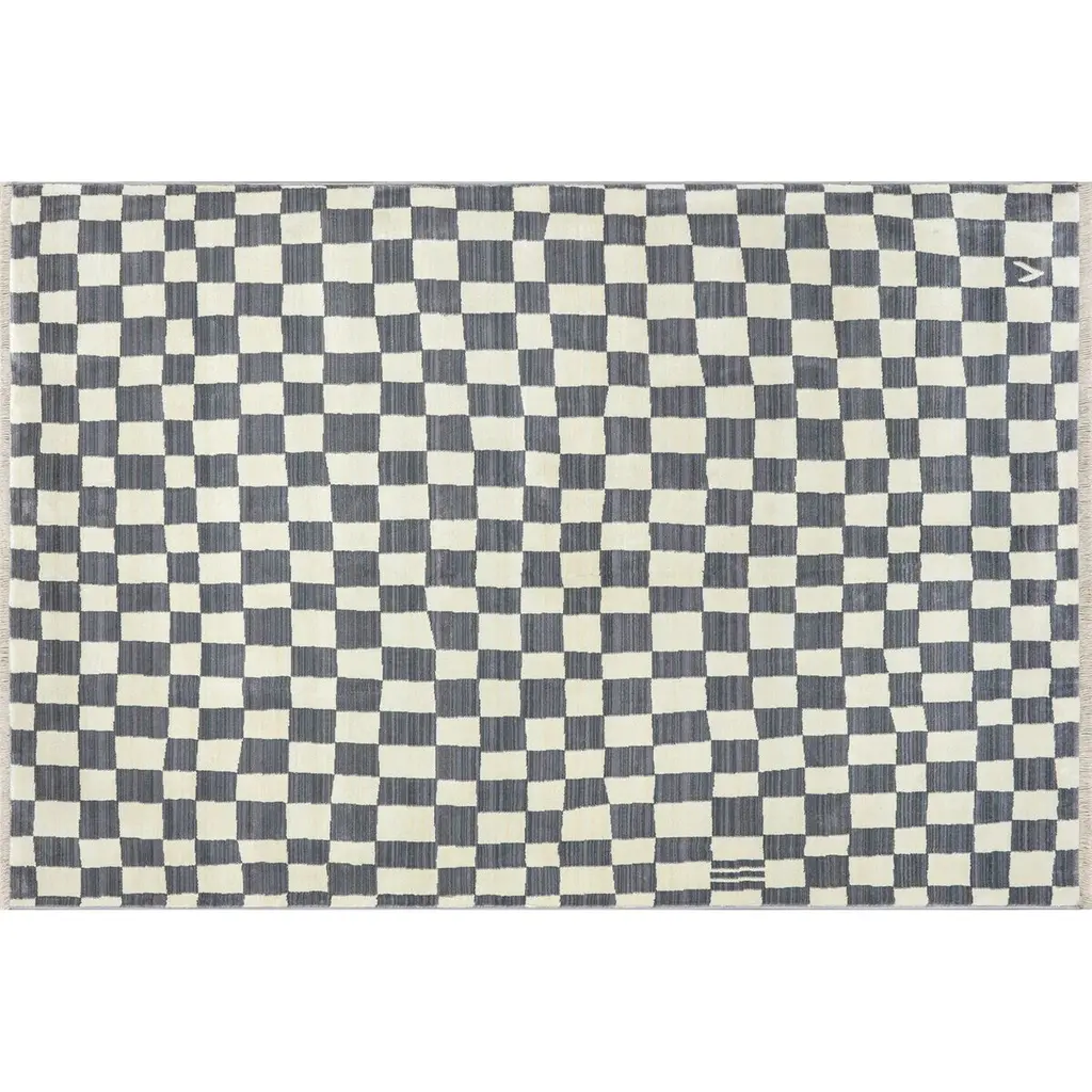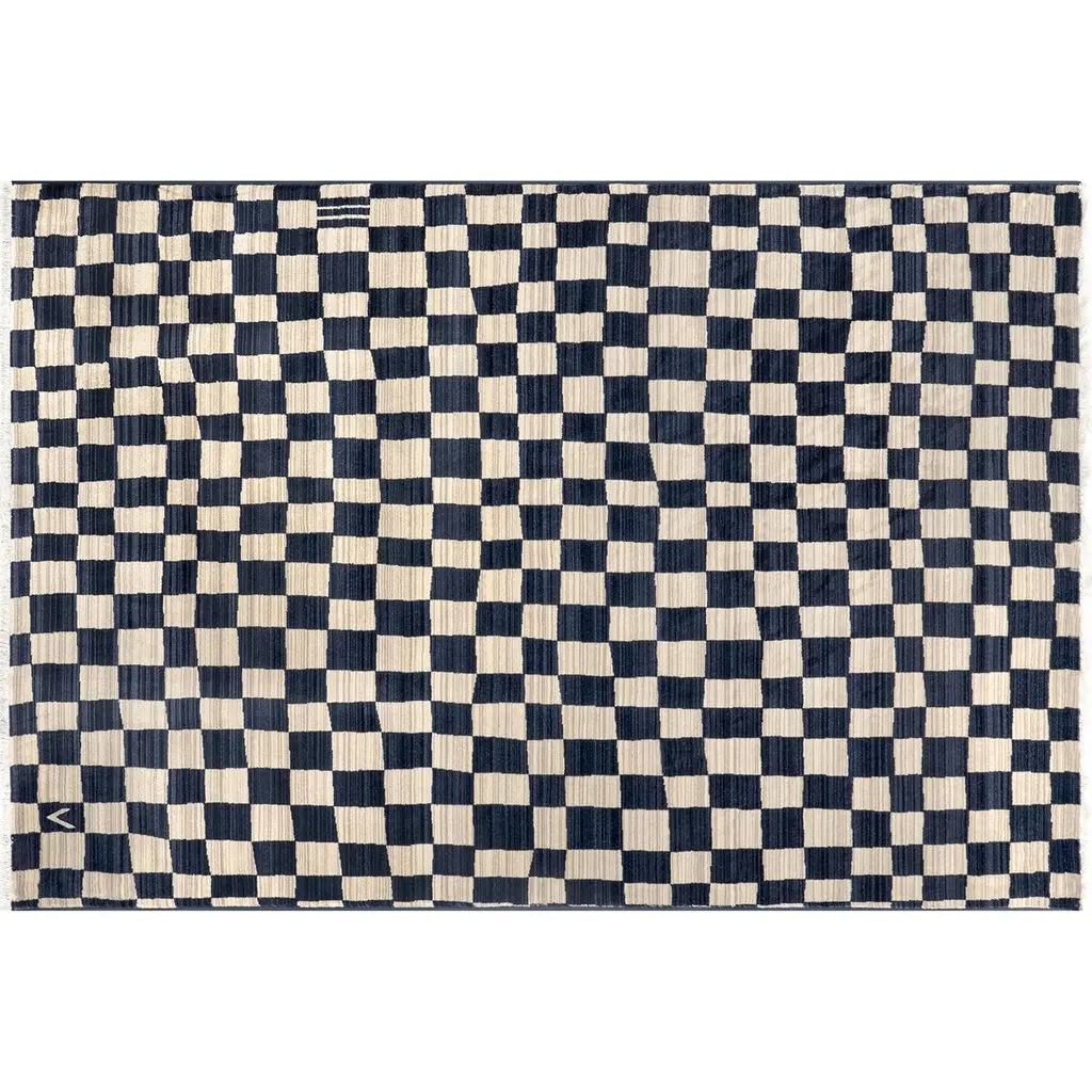 Rasali Checkered Box Rug | Navy - 3' 3" X 5'