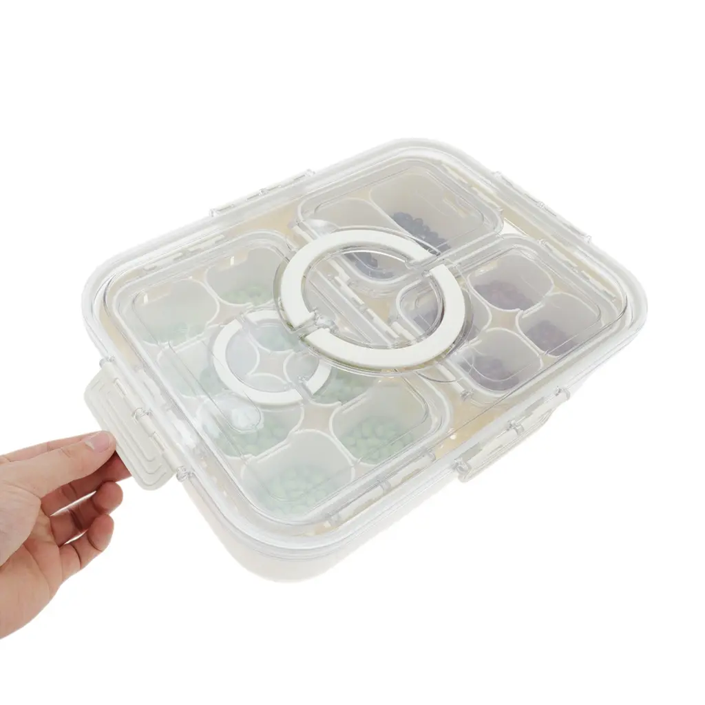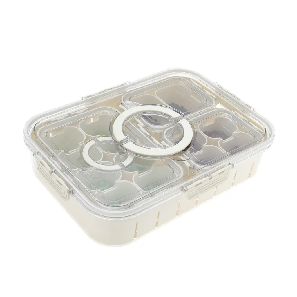 Rectangle Drain Food Storage Containers 14 Compartment White Transparent 1 Set - White Transparent - White Transparent