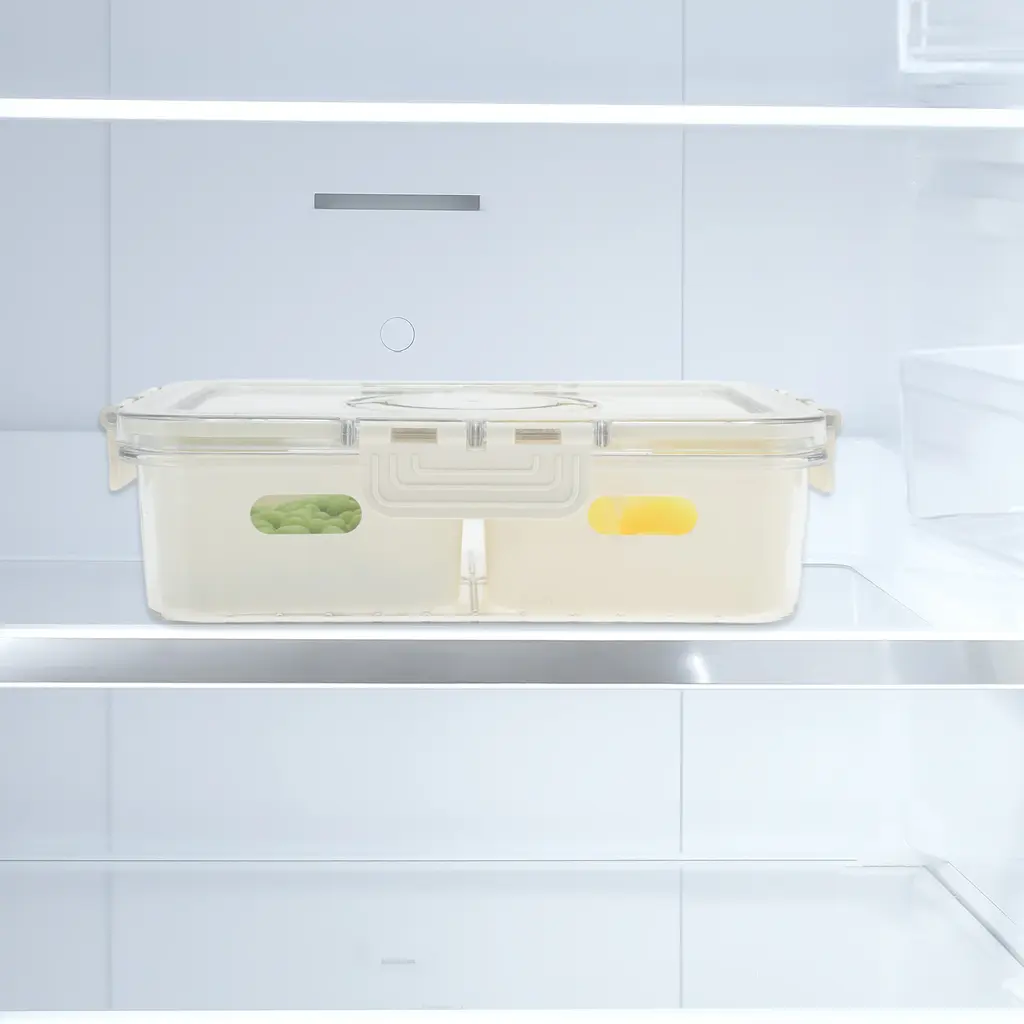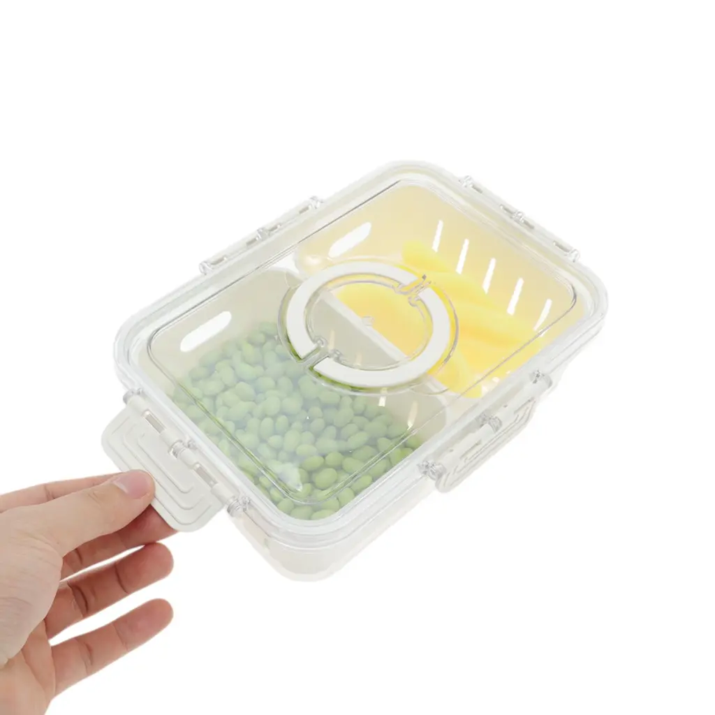 Rectangle Drain Food Storage Containers 2 Compartment White Transparent 1 Set - White Transparent - White Transparent