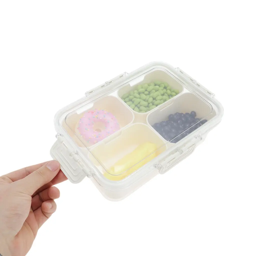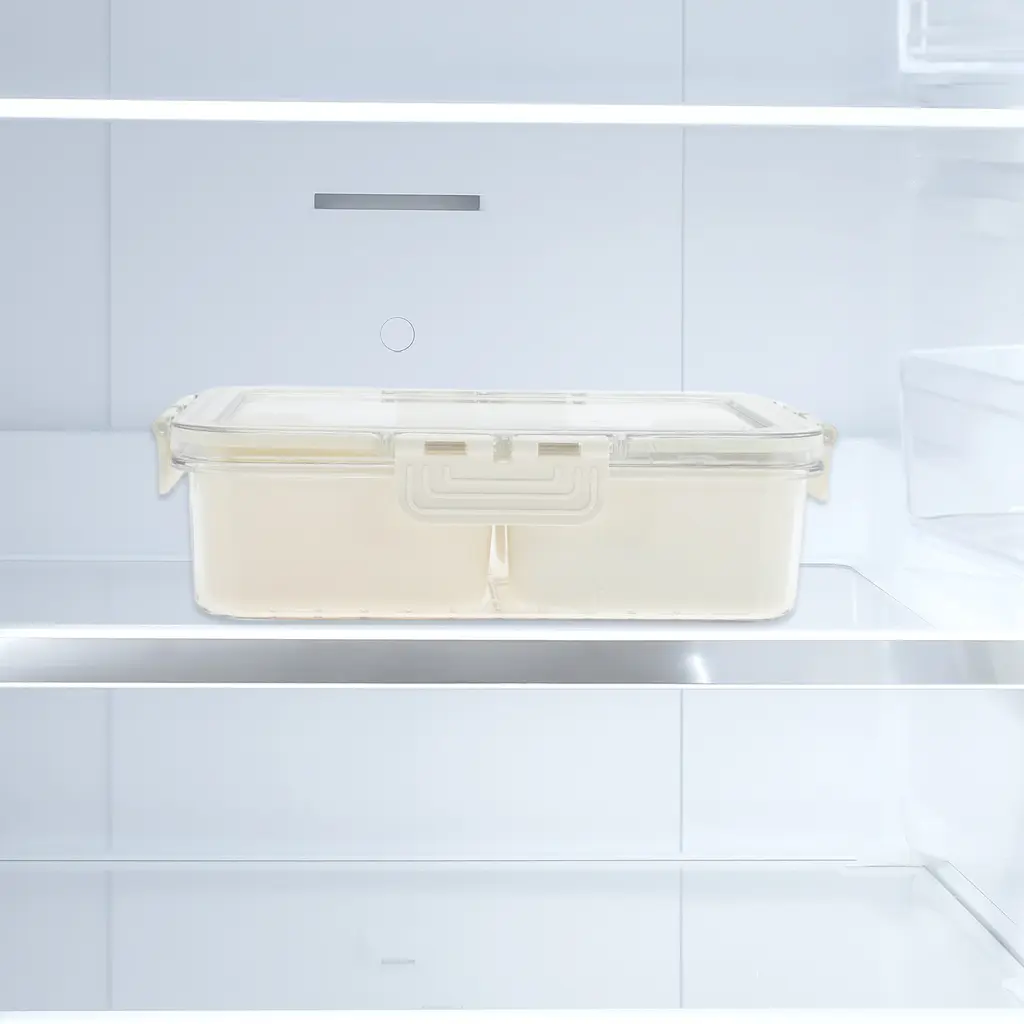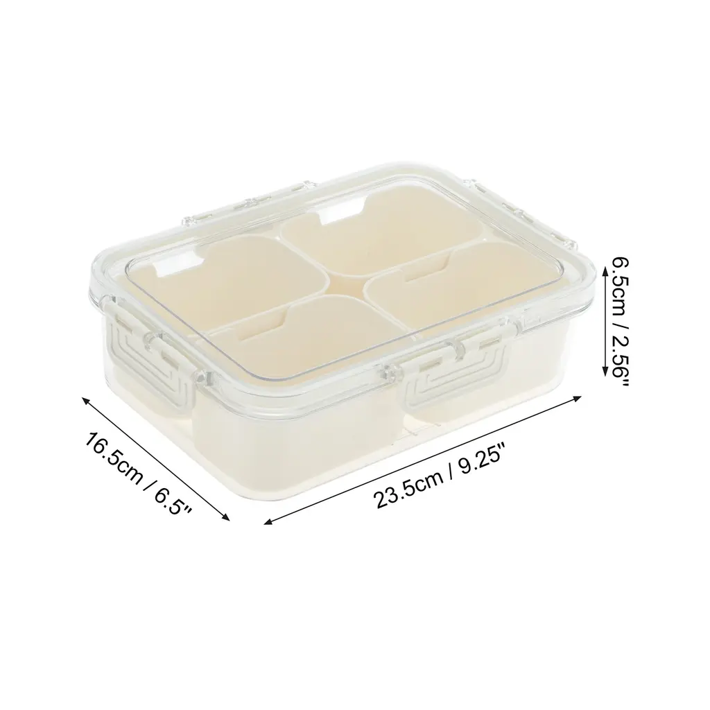 Rectangle Fridge Food Storage Containers 4 Compartment White Transparent 1 Set - White Transparent - White Transparent