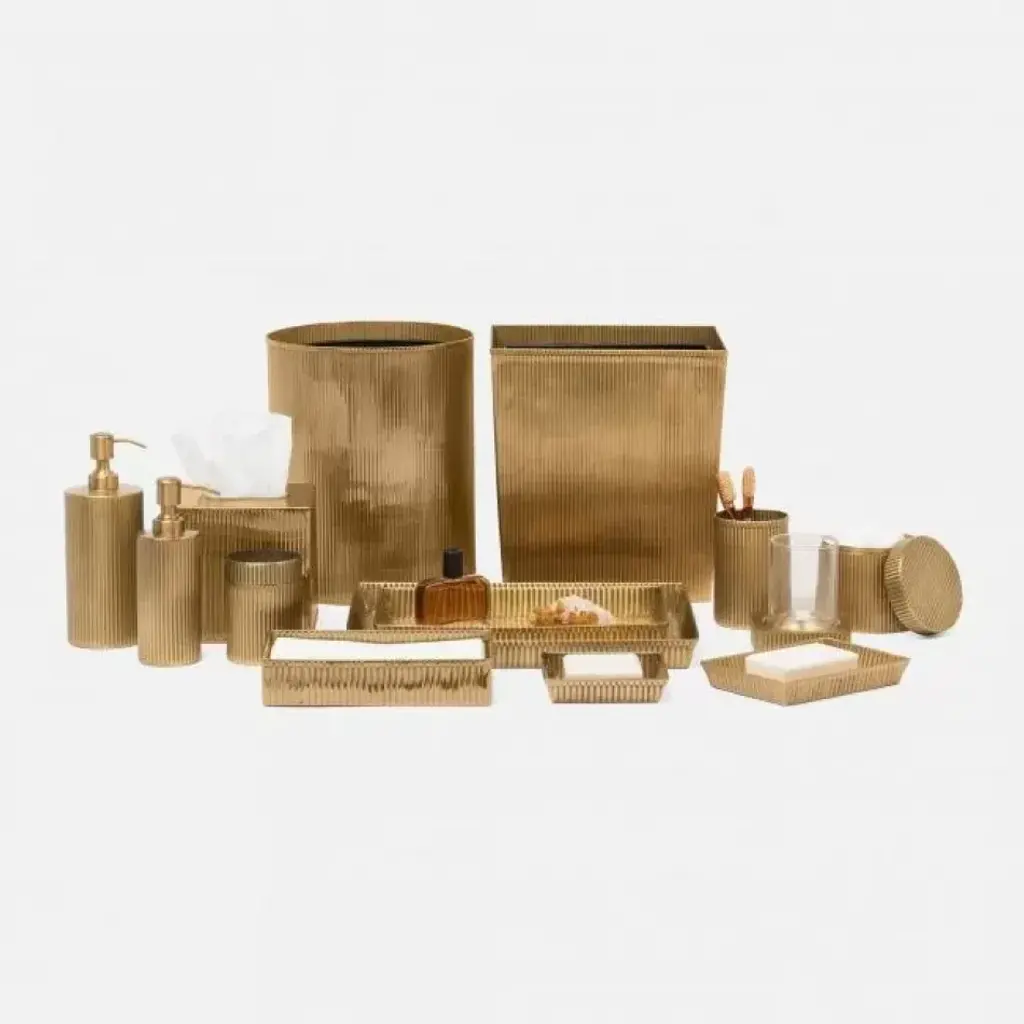 Set a masculine tone with our ribbed metal Redon. The antiqued brass set can elevate an industrial setting, or pair the shiny nickel with glass accessories for an Art Deco–feel that features just the right amount of glam. The designers at Pigeon & Poodle believe the details of a home are just as important as the furniture. A gorgeous toothbrush holder or handcrafted canister can elevate an entire bath, the perfect frame can heighten the feel of a whole space, and a good-looking storage basket can be your look’s missing link. With thoughtful design and top-notch craftsmanship, Pigeon & Poodle create home accessories with the care and attention typically reserved for larger pieces of décor.