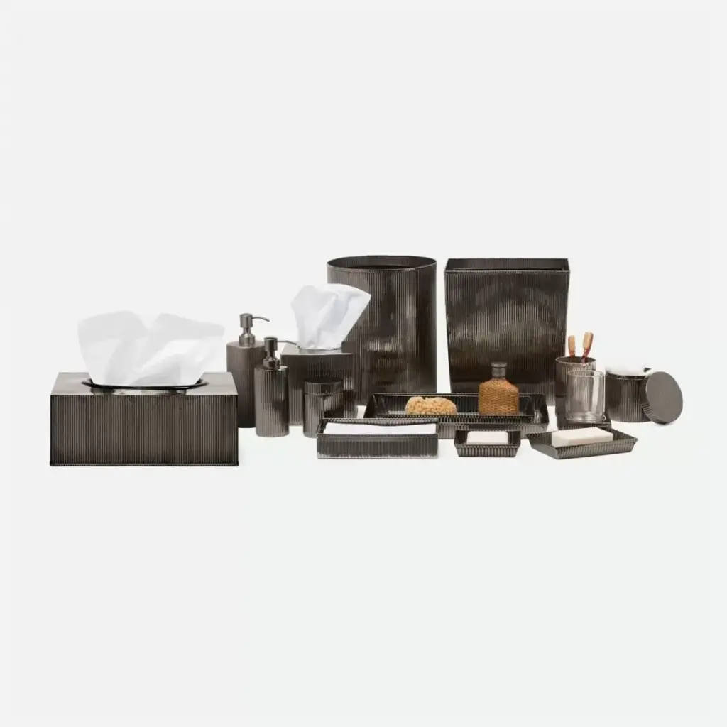 Set a masculine tone with our ribbed metal Redon. The antiqued brass set can elevate an industrial setting, or pair the shiny nickel with glass accessories for an Art Deco–feel that features just the right amount of glam. The designers at Pigeon & Poodle believe the details of a home are just as important as the furniture. A gorgeous toothbrush holder or handcrafted canister can elevate an entire bath, the perfect frame can heighten the feel of a whole space, and a good-looking storage basket can be your look’s missing link. With thoughtful design and top-notch craftsmanship, Pigeon & Poodle create home accessories with the care and attention typically reserved for larger pieces of décor.