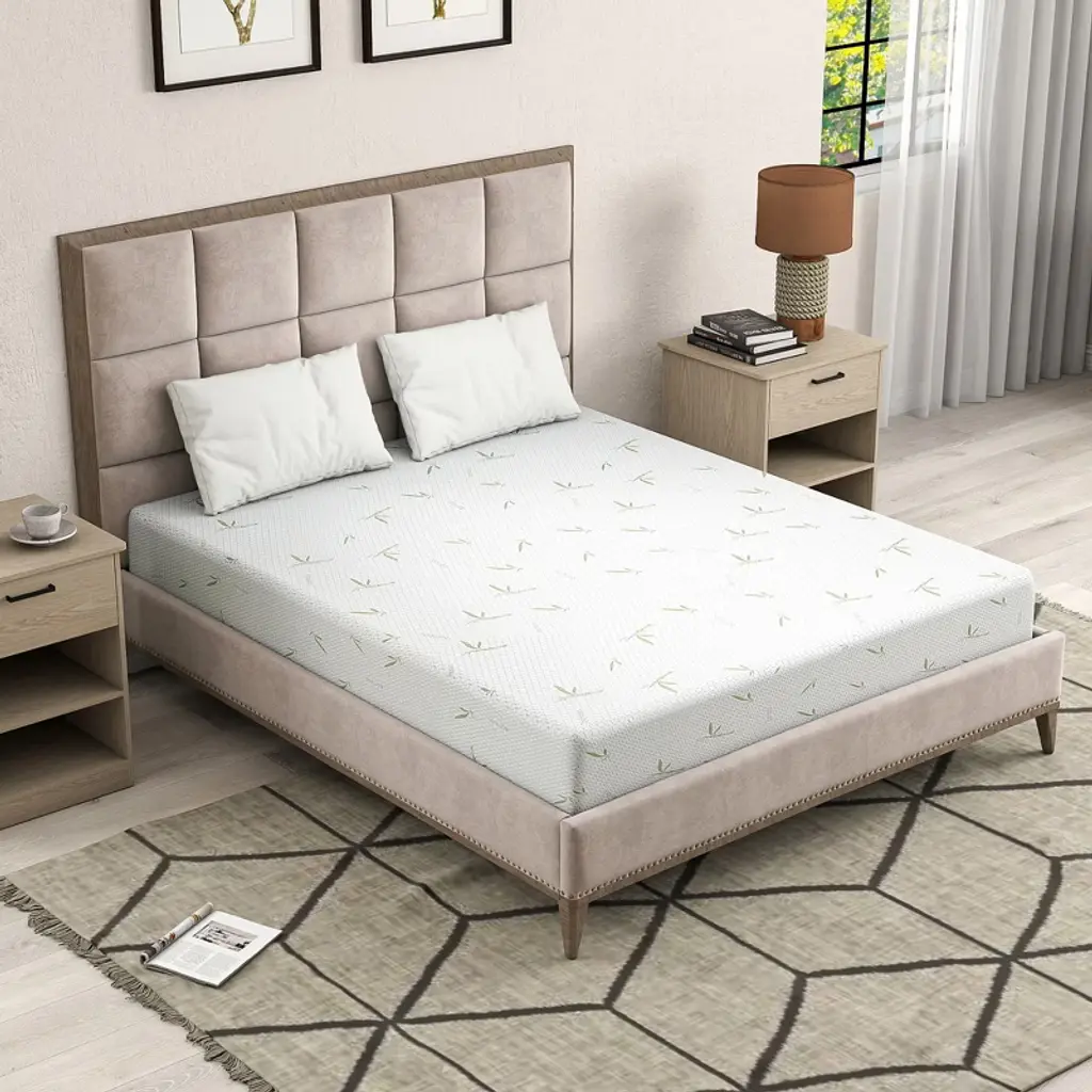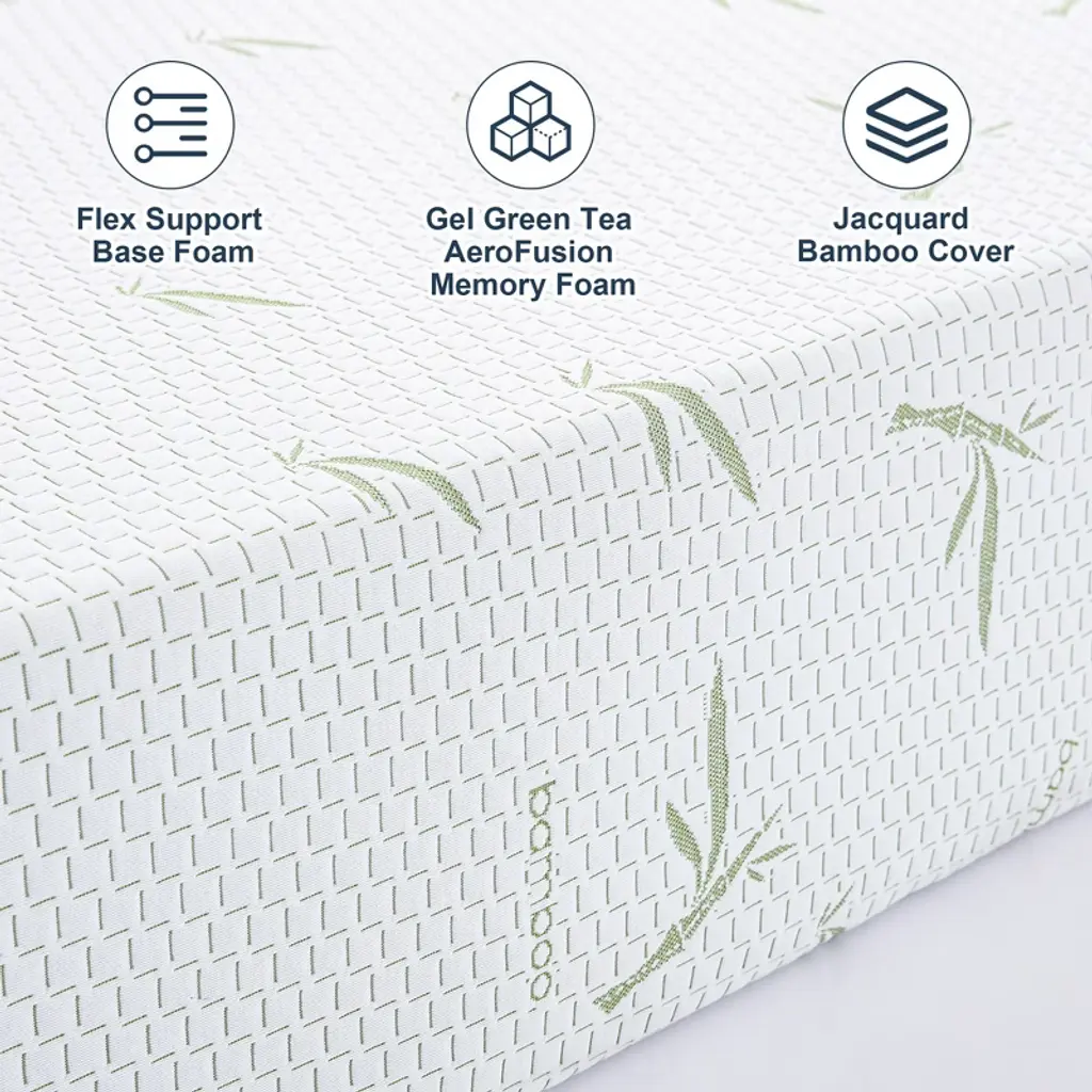The product is wrapped in a Jacquard bamboo cover. Bamboo is a highly sustainable resource, growing rapidly without the need for excessive pesticides or water. The Jacquard weaving technique gives it an exquisite and unique pattern, while the bamboo fabric offers a soft, breathable, and moisture - wicking surface, keeping you cool and comfortable.The gel infusion effectively dissipates heat, preventing overheating during sleep. Green tea extract helps neutralize odors, and AeroFusion technology enhances airflow, creating a fresh and breathable sleep environment.