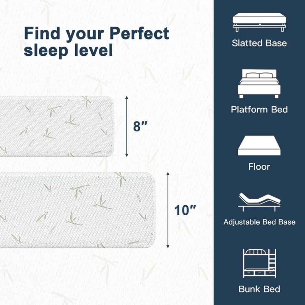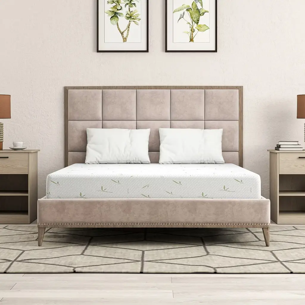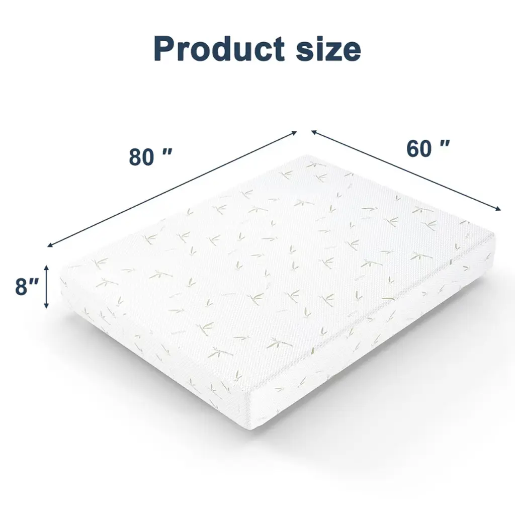 Resenkos Queen Size Memory Foam Mattress In A Box, 2" Gel Green Tea Aerofusion Memory Foam, 6" Flex Support Base Foam, Soft Touch, Dreamer 8", White