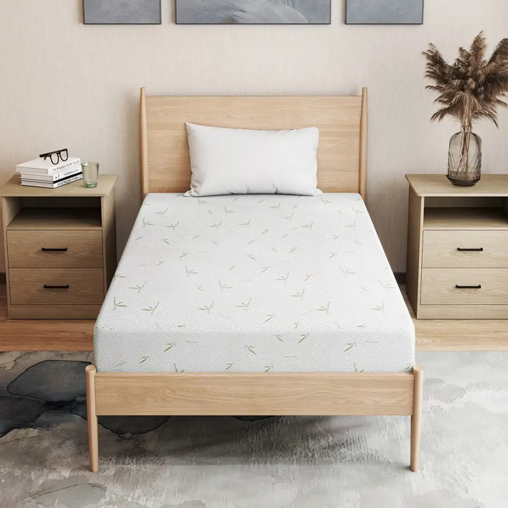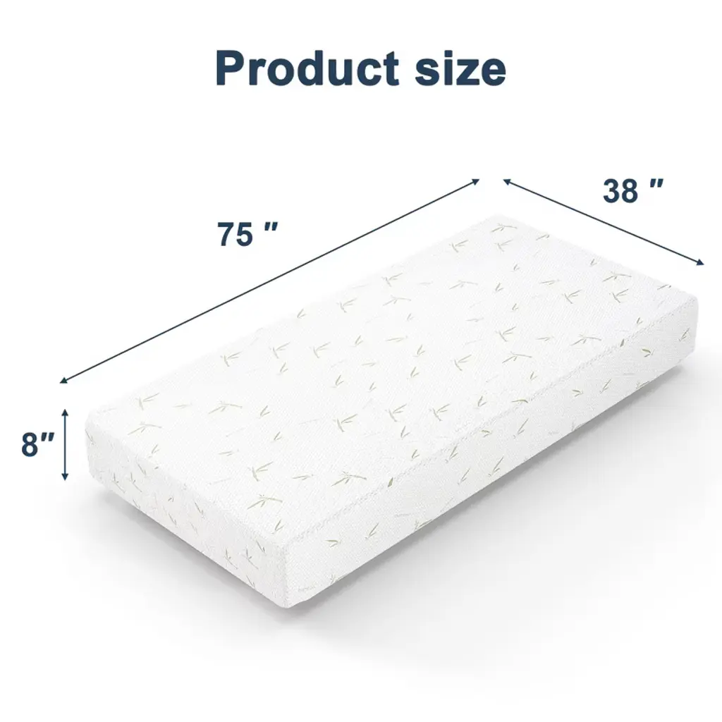 Resenkos Twin Size Memory Foam Mattress In A Box, 2" Gel Green Tea Aerofusion Memory Foam, 6" Flex Support Base Foam, Soft Touch, Dreamer 8", White