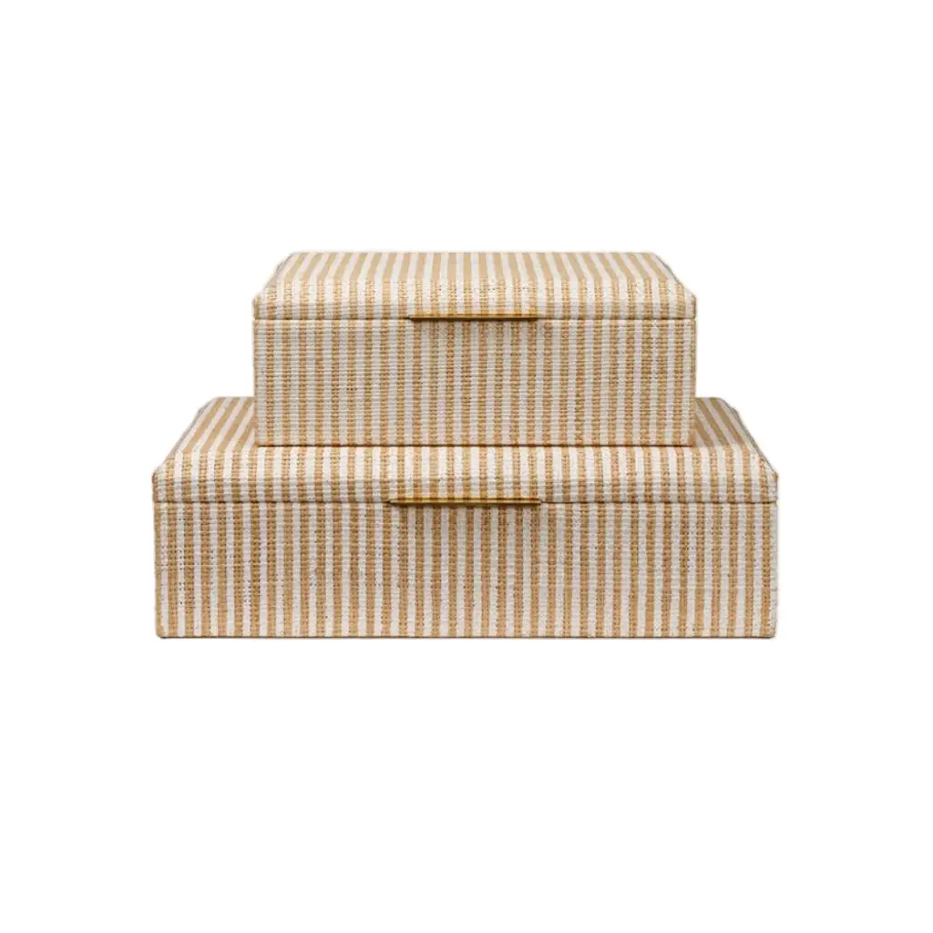 Riga Brown Candy Striped Canister Large: 5"l X 5"w X 3.5"h, Small: 4"l X 4"w X 3"h, Set Of 2