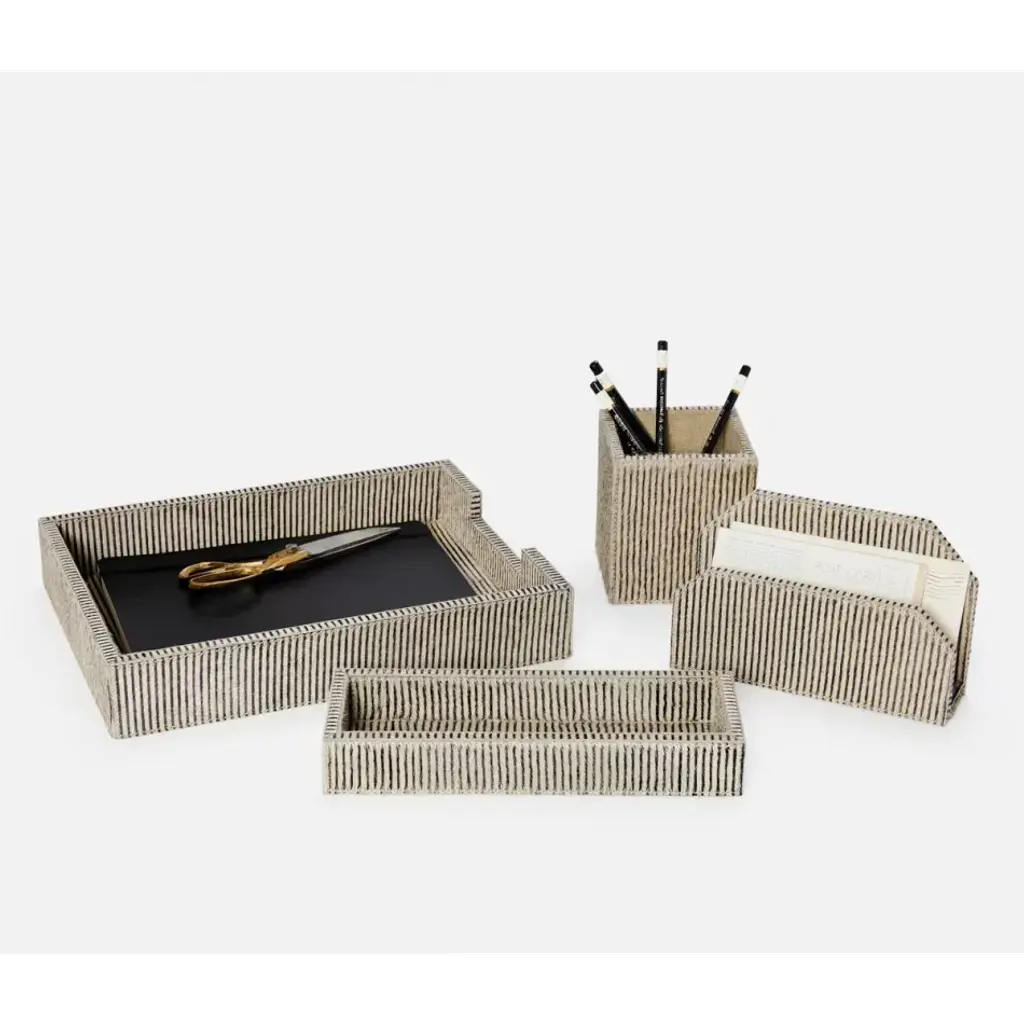 This brand new Brown Candy Striped desk set has a soft feel and sharp look. Inspired by our favorite looks in fashion and art, the hair-on-hide Riga collection will earn you style stripes. The designers at Pigeon & Poodle believe the details of a home are just as important as the furniture. A gorgeous toothbrush holder or handcrafted canister can elevate an entire bath, the perfect frame can heighten the feel of a whole space, and a good-looking storage basket can be your look’s missing link. With thoughtful design and top-notch craftsmanship, Pigeon & Poodle create home accessories with the care and attention typically reserved for larger pieces of décor.