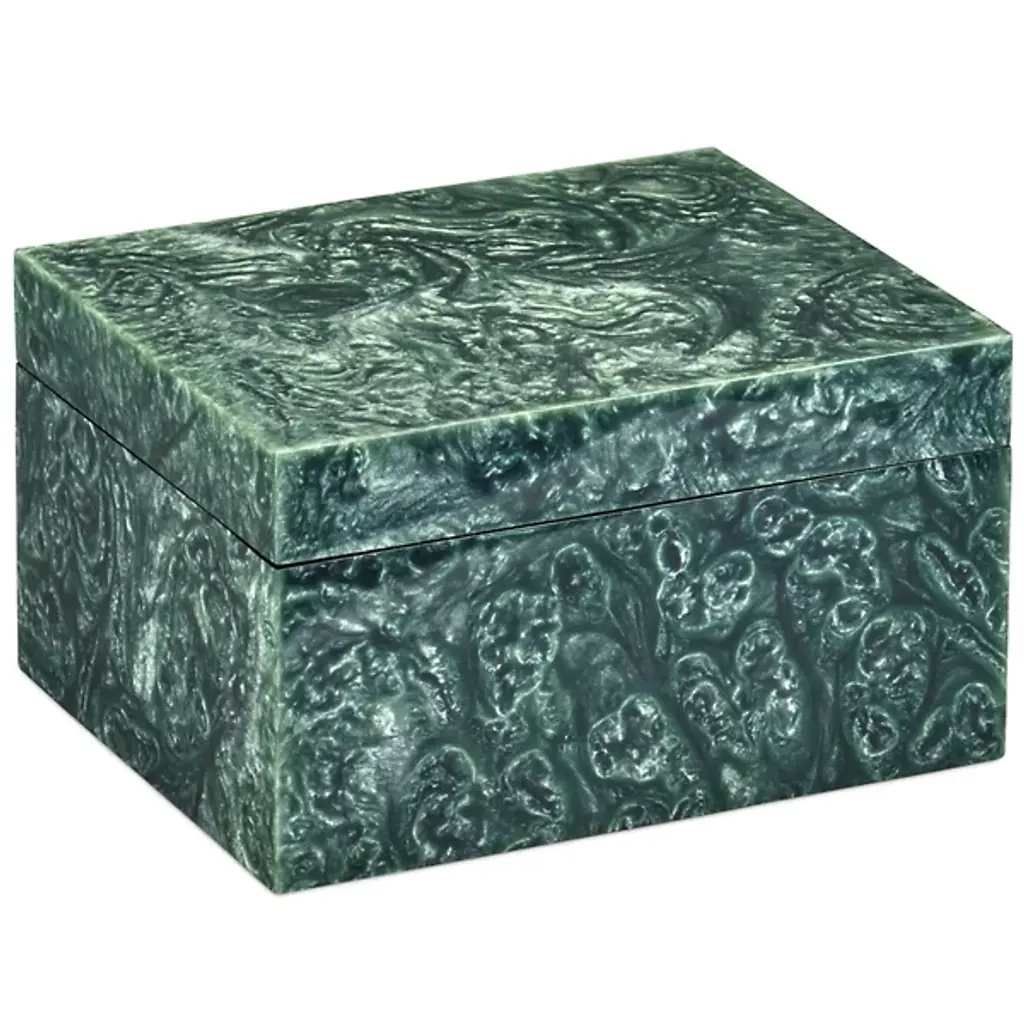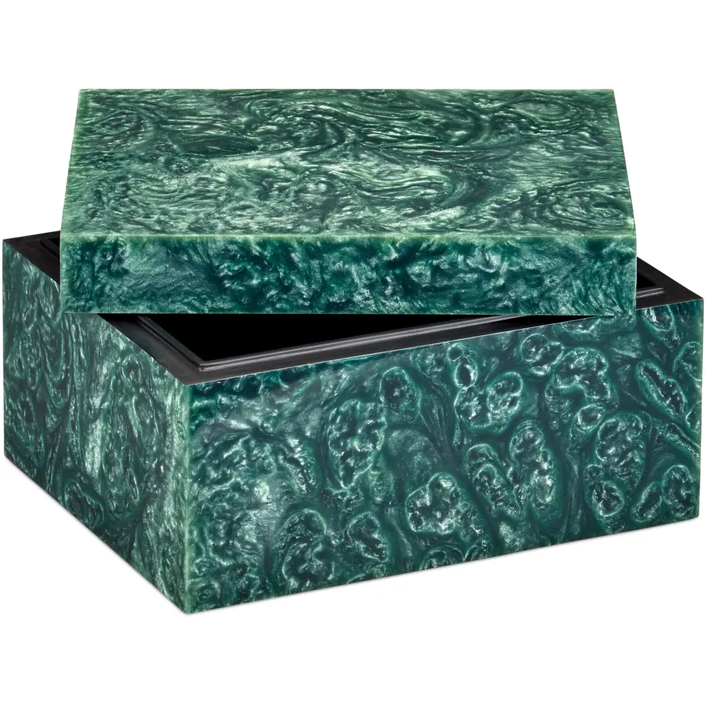 Make a grand statement of elegance with the Rena Teal Box with its swirling surfaces created when pearlescent powder is blended with composite to form mesmerizing organic patterns that cover the entire box. Perfect for storing cherished items or adding a sophisticated touch to a vignette, the Rena Teal Box effortlessly combines beauty and functionality.