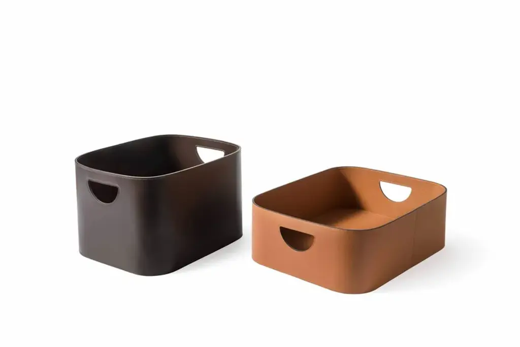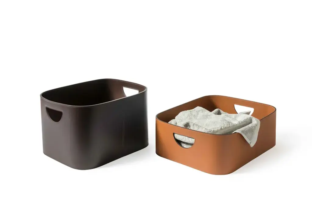 Rio is a box with a simple model especially designed for wardrobes and walk-in closets. A line crafted with resistant regenerated leather with two practical holes as handles on the short sides. Available in different sizes and shapes, this collection can be made in more than 15 colors.