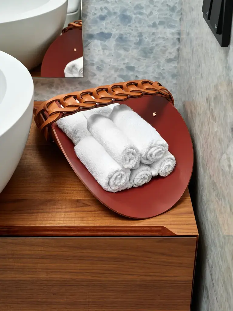 Riviera Collection’s distinctive feature is a twisted sailor's knot. Made from water- and UV-resistant leather, the items can be used on yachts and in spas. Each product utilizes ADJ's multifunctional leather, which undergoes double-sided dyeing and a specialized anti-vandal treatment, resulting in enhanced durability against wear, scratches, and abrasions.