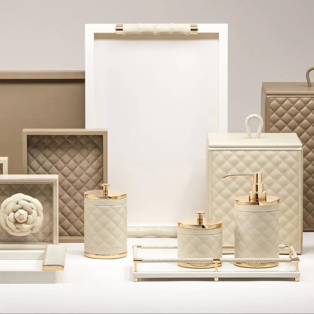 An elegant spot to store your treasures, the Alghero Diamonds Trinket Box is a glamorous design from the Giobagnara x Riviere collaboration. Expertly handcrafted in Italy, its surface is meticulously wrapped in soft, padded leather stitched into a timeless quilted diamond pattern. Crowned with a brilliant polished metal knob and base, it offers a chic sanctuary for your most cherished belongings. A fusion of high-fashion texture and elegant function, it’s an exquisite accent for any glamorous personal space. Highlights: