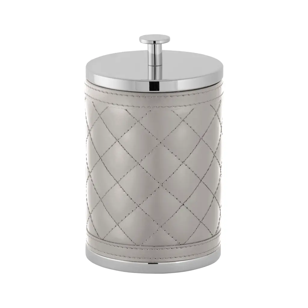 An elegant spot to store your treasures, the Alghero Diamonds Trinket Box is a glamorous design from the Giobagnara x Riviere collaboration. Expertly handcrafted in Italy, its surface is meticulously wrapped in soft, padded leather stitched into a timeless quilted diamond pattern. Crowned with a brilliant polished metal knob and base, it offers a chic sanctuary for your most cherished belongings. A fusion of high-fashion texture and elegant function, it’s an exquisite accent for any glamorous personal space. Highlights:
