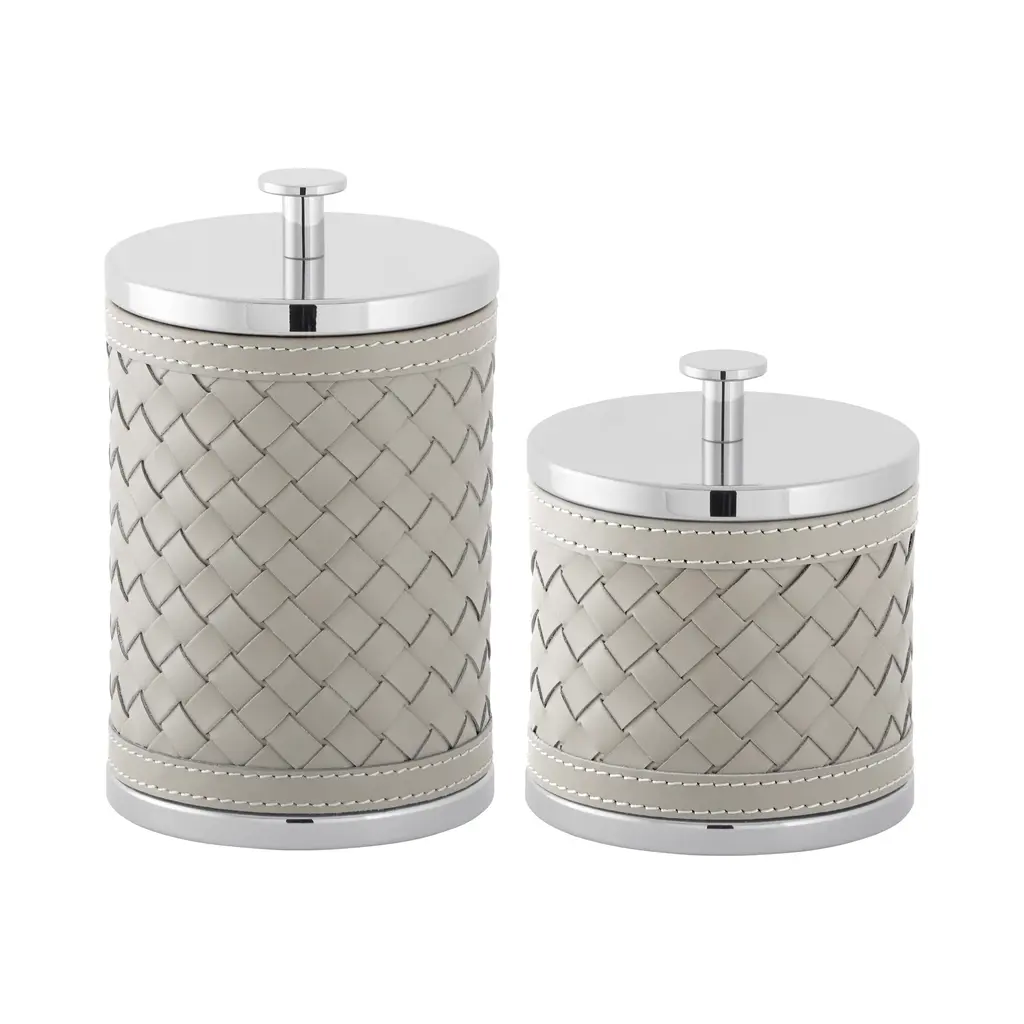 A masterpiece of artisanal texture, the Alghero Handwoven Trinket Box is a sophisticated design from the Giobagnara and Riviere collaboration. Expertly handcrafted in Italy, its surface is meticulously wrapped in handwoven leather, creating a rich, tactile surface that is both stunning and durable. Crowned with a brilliant polished metal knob and base, it offers a chic sanctuary for your most cherished belongings. A fusion of heritage craft and modern elegance, it’s an exquisite accent for any glamorous personal space. Highlights: